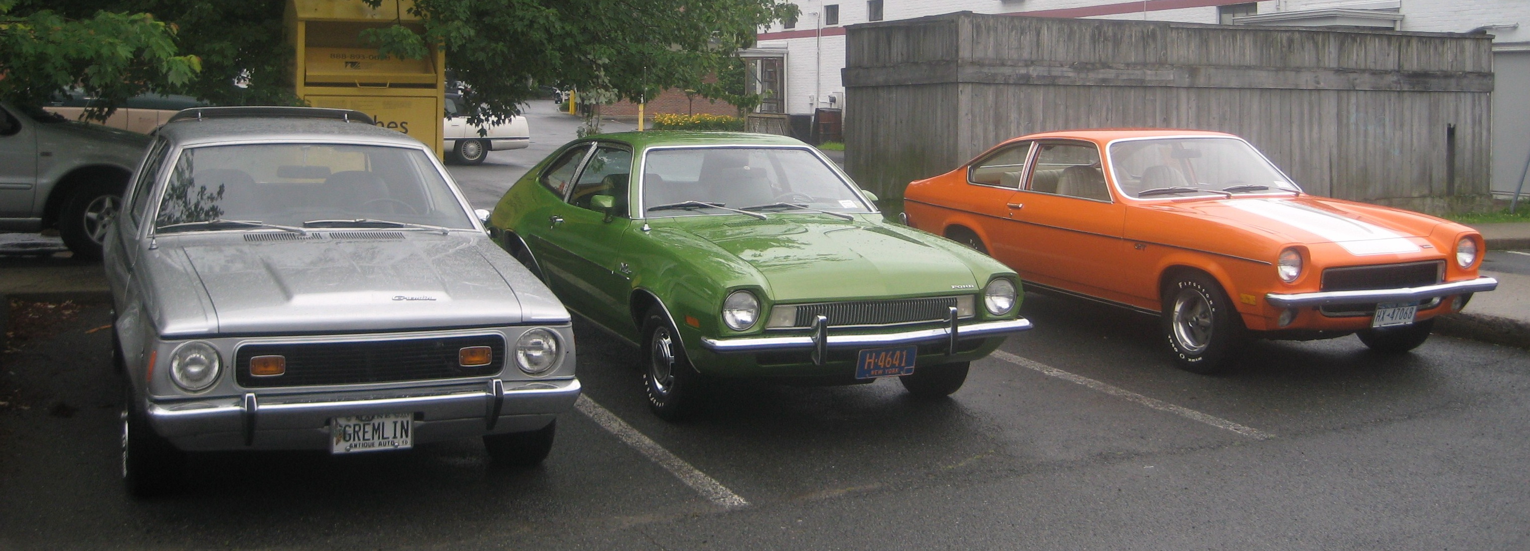 1세대 미국 서브컴팩트, 왼쪽부터: AMC 그렘린, 포드 핀토, 쉐보레 베가