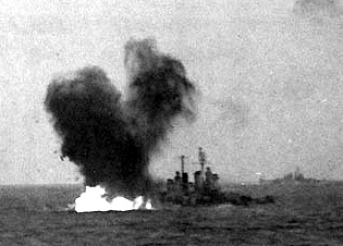제38.1 기동부대는 10대의 요코스카 P1Y "프랜시스" 폭격기의 공격을 받았다. 6대가 격추되었지만, 프랜시스 폭격기 1대가 캔버라에 어뢰를 명중시켜 23명이 사망하고 순양함에 심각한 피해를 입혔다. 두 개의 엔진실이 침수되고 조타 장치에도 피해가 발생했다. 캔버라는 제30.3 기동부대의 일원으로 예인되어야 했다. 22시경 위치타가 손상된 순양함을 남동쪽으로 예인하기 시작했다.