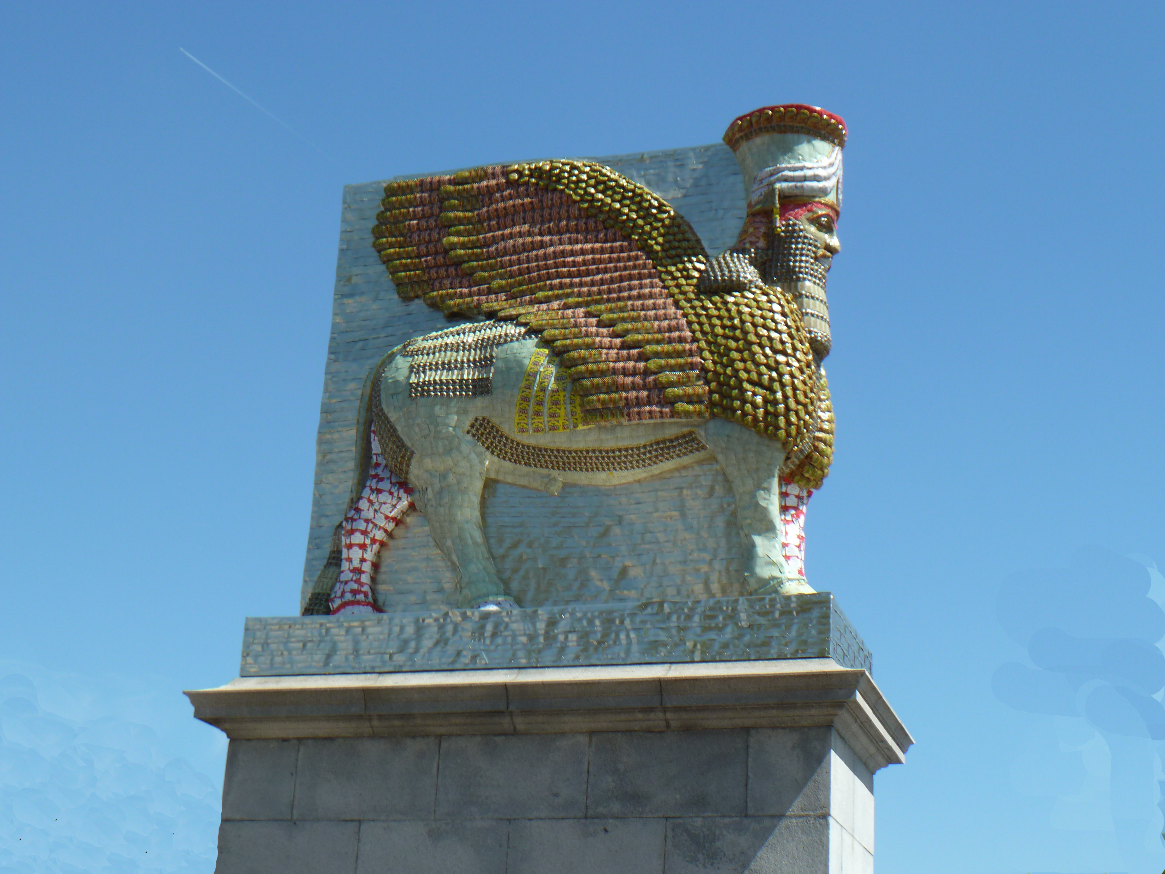 이라크 레반트 이슬람 국가 (ISIS)에 의해 파괴된 니네베 네르갈문의 라마수 석상을 대추야자 꿀 깡통으로 재현한 작품이다.[72][73] | |||