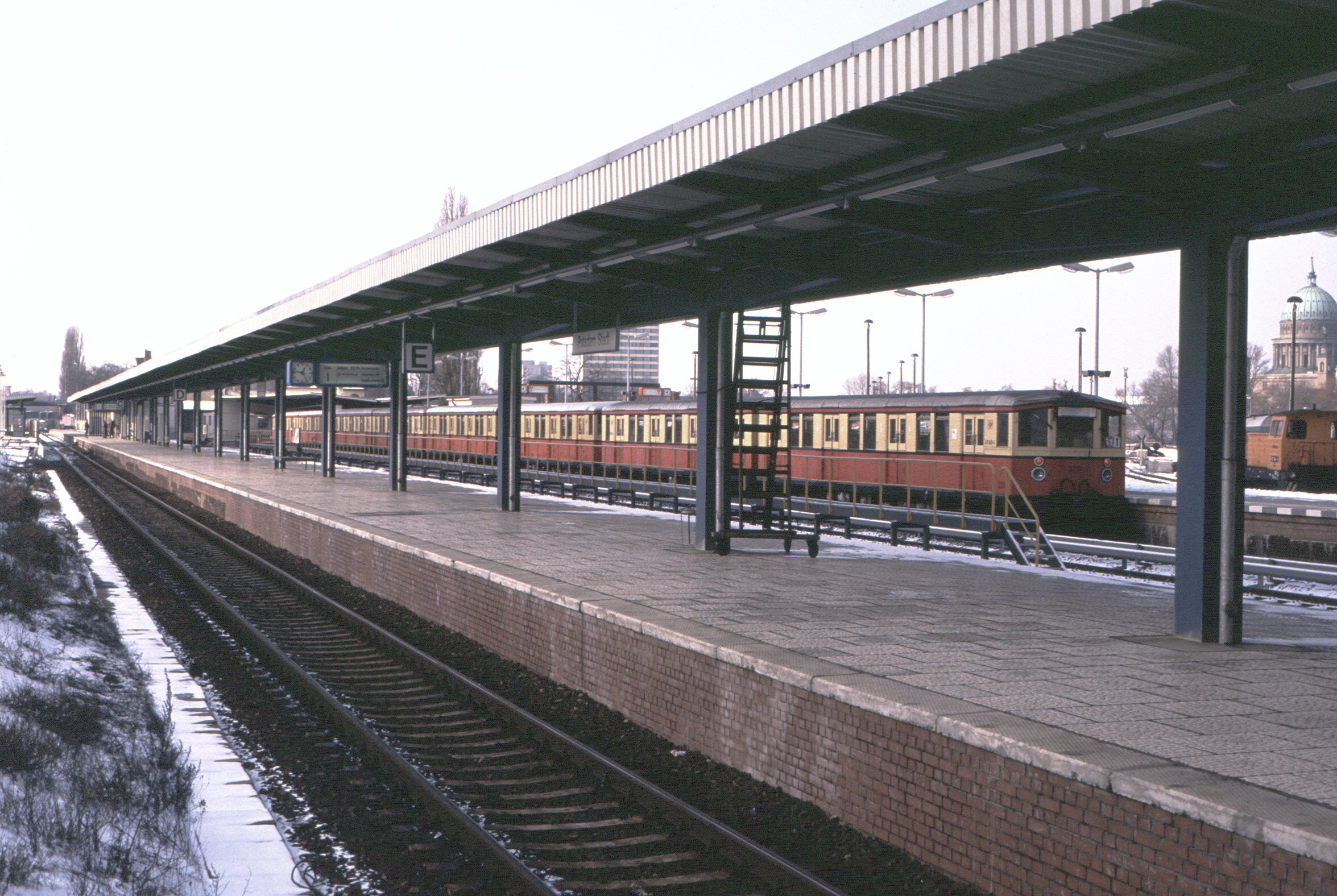 - 동서독 분단 시기 (1945년~1990년): 1953년부터 1958년까지 서베를린을 무정차 통과하는 동베를린행 열차가 운행되었다. 1958년 베를린 외곽순환선 개통으로 동독 국내 열차는 포츠담 피르슈하이데역으로 우회했다. 1960년 포츠담 슈타트역으로 개칭되었고, 1961년 베를린 장벽 건설로 S반 운행이 중단되었다.