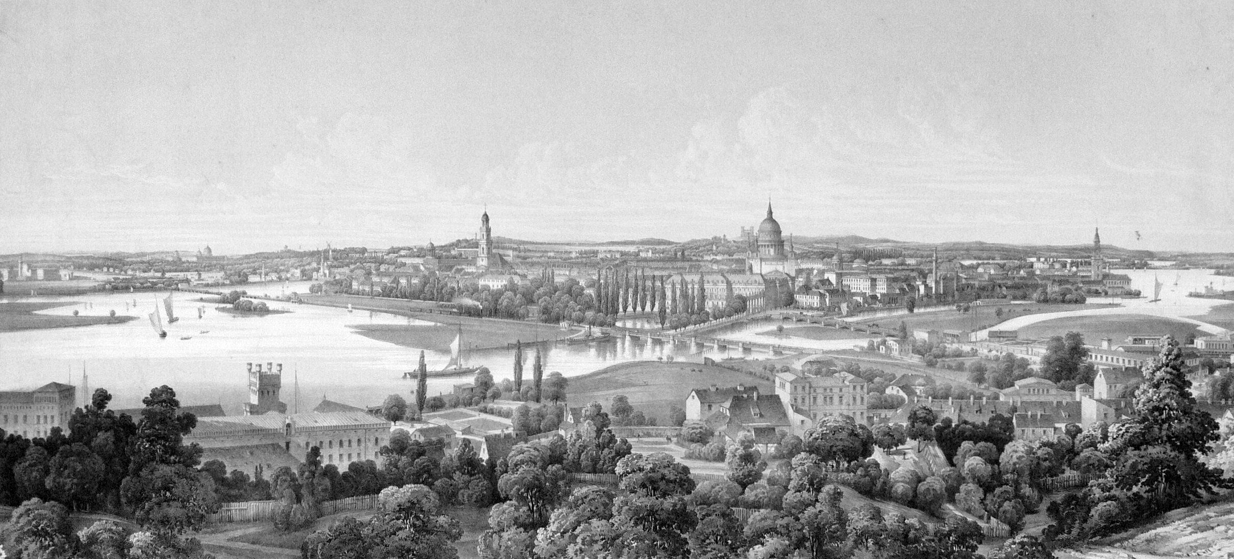 프로이센 최초의 철도 노선이자 현재 독일에서 가장 오래된 철도 노선 중 하나인 베를린-포츠담 간 철도가 1838년 9월 22일에 개통되었다.[7] 당시 종착역은 현재 포츠담 중앙역 위치에 있었으며, 랑게브뤼케(Lange Brücke) 교 서쪽에 있던 증기선 선착장과 연결되는 전용선이 있었다.