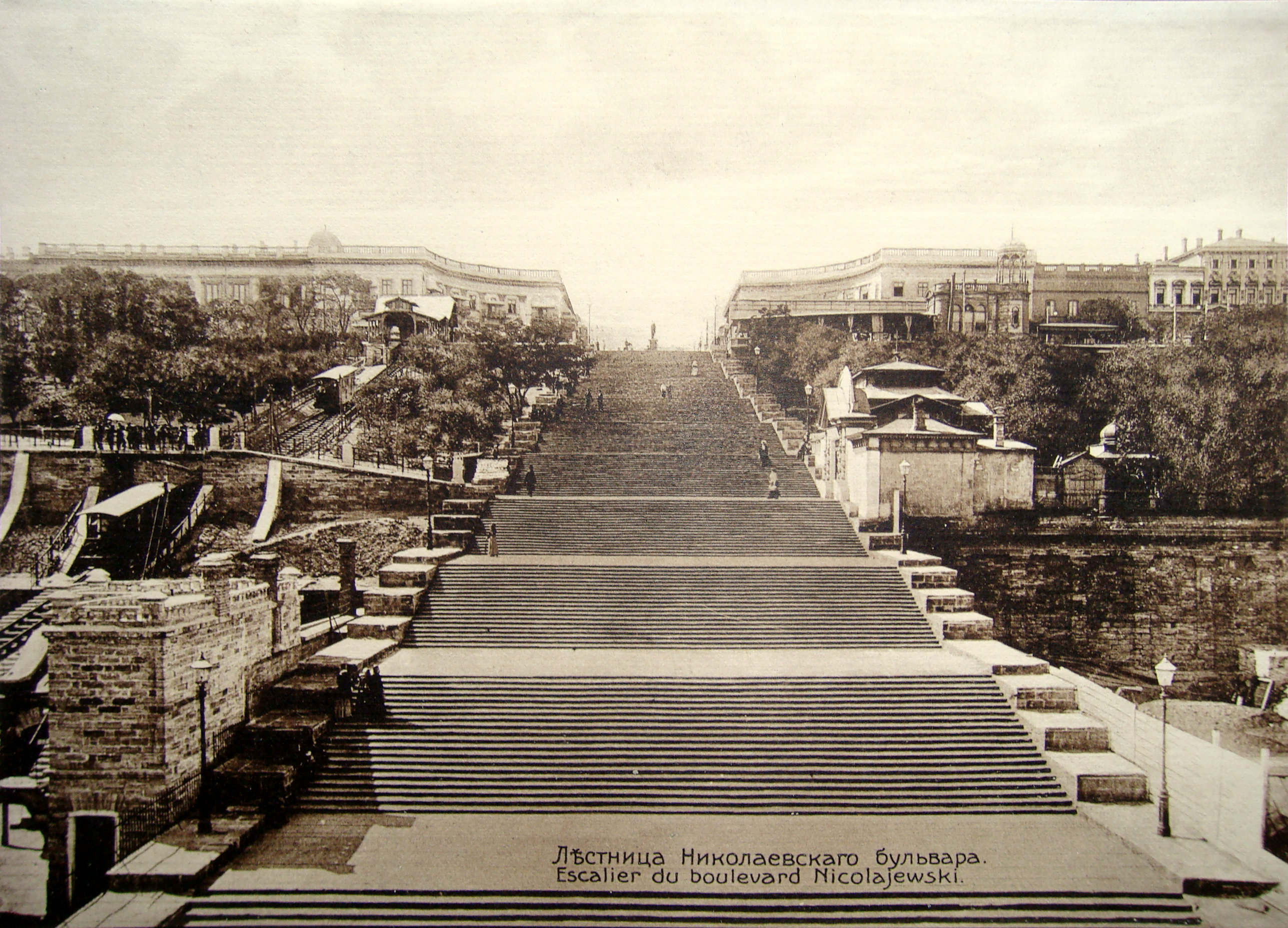 오데사는 높은 스텝 평원에 자리 잡고 있어 아래 항구로 바로 접근할 수 있는 통로가 필요했다. 계단이 건설되기 전에는 구불구불한 길과 조잡한 나무 계단만이 항구로 가는 유일한 통로였다.[3]