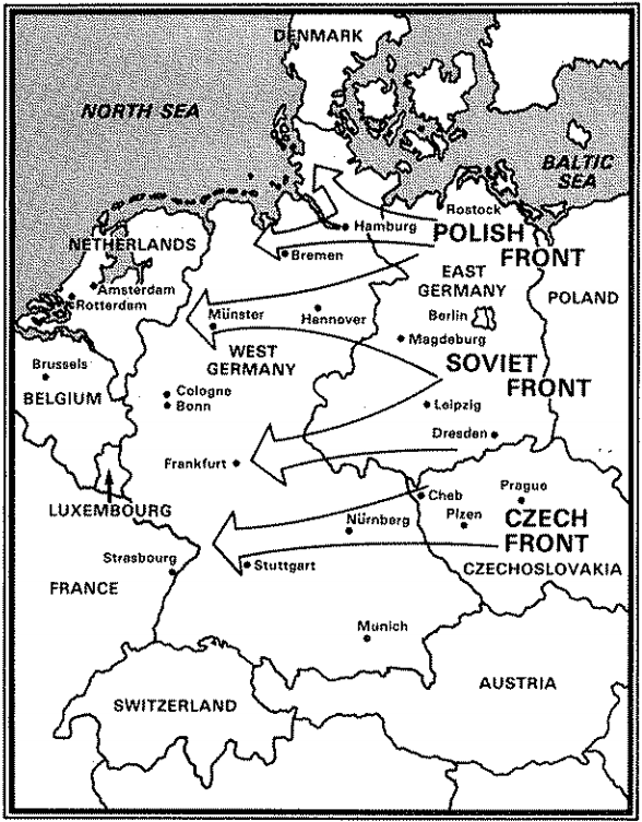 NATO의 진격으로 폴란드 영토를 방어해야 하는 상황일 경우, 유럽 러시아에 주둔하던 90개 차량화, 공수, 기갑, 포병사단이 폴란드 영내로 이동할 예정이었다. 작계에 따르면 최소한 두 개의 전선군과 '상당한 규모'의 서부군사작전전역 전략 예비대가 폴란드로 이동할 것이었다. 이 경우 폴란드군의 동원과 소련군의 폴란드 내 전개는 상당히 곤란해질 것이었다.[11]
