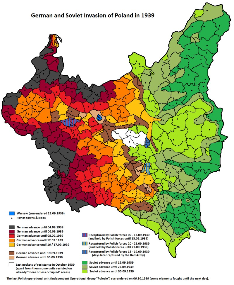 바르샤바는 9월 28일 함락되었고, 모들린 요새는 모들린 전투라 불리는 16일간의 격렬한 전투 후 9월 29일 항복했다. 소련군은 9월 28일까지 나레프 강, 서부크 강, 비스와 강, 산 강에 도달했으며, 많은 경우 서쪽에서 진격해 온 독일군과 만났다.