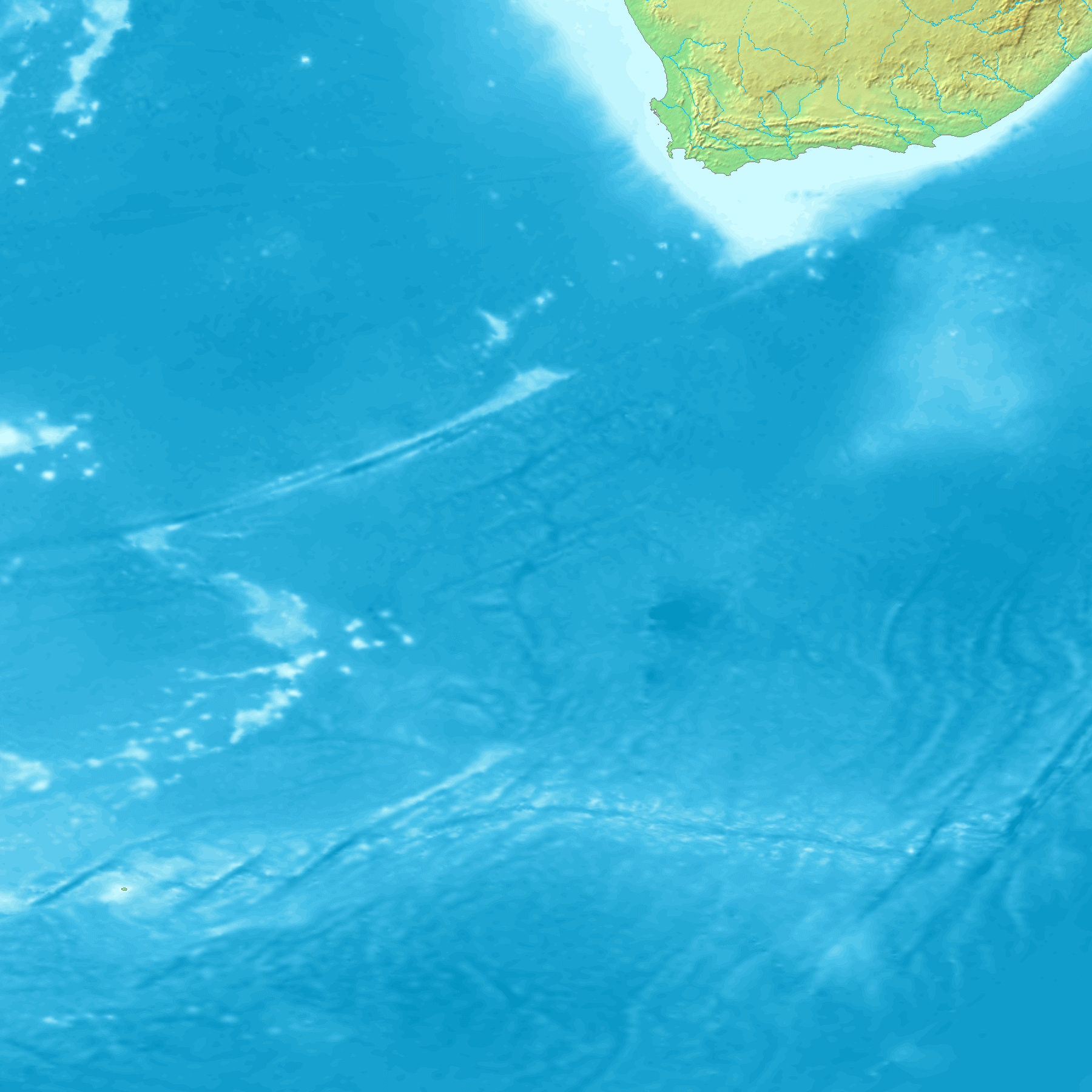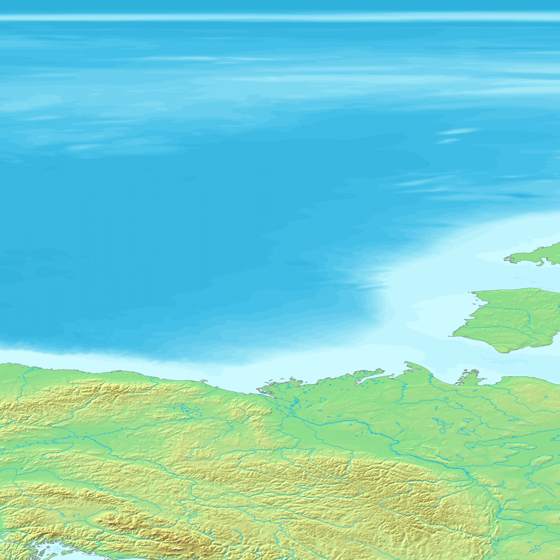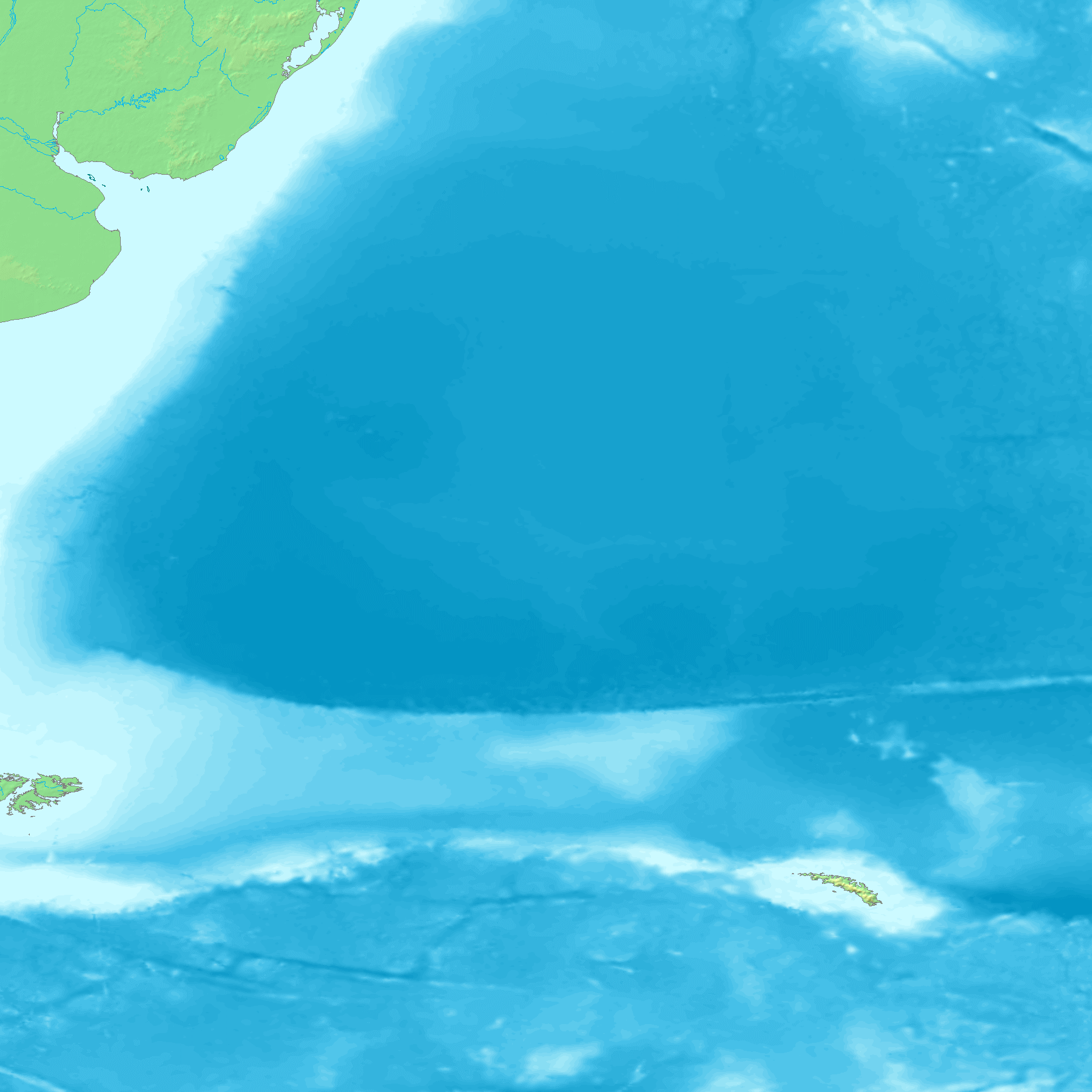 thumb으로 표현된 지구 표면(물과 얼음 포함)의 고도 맵으로, 8비트 회색조로 정규화되었으며, 밝은 값은 높은 고도를 나타낸다.]]