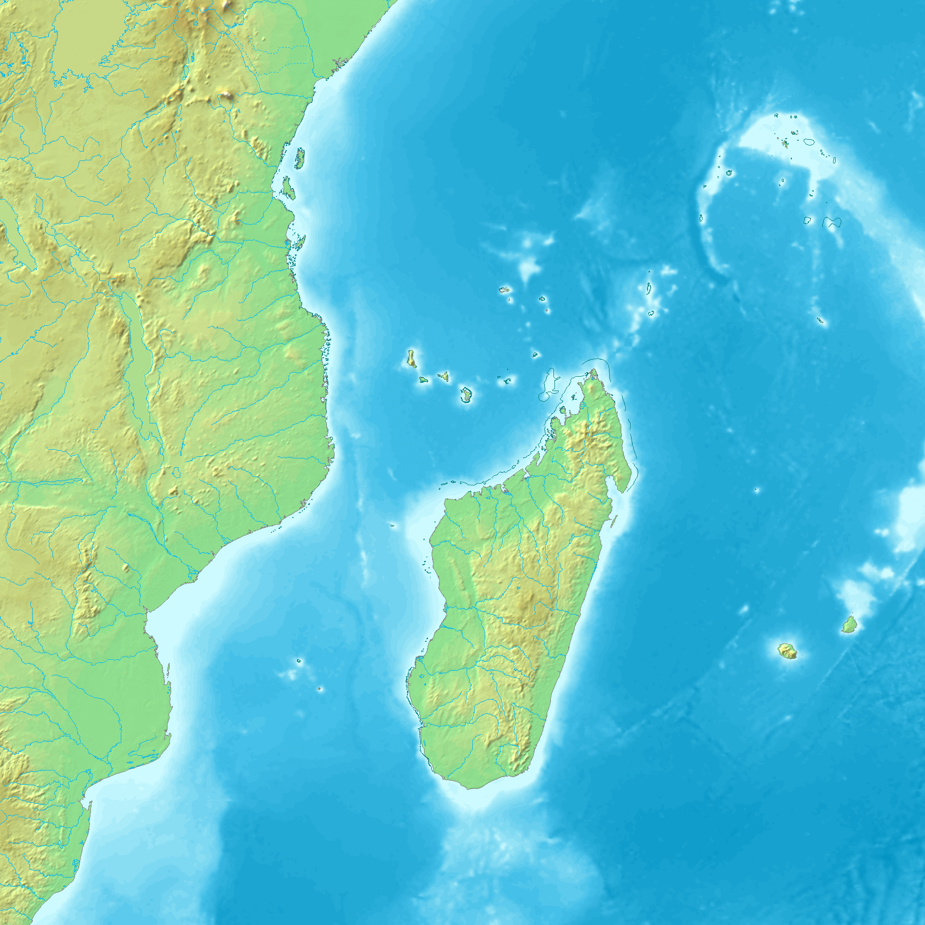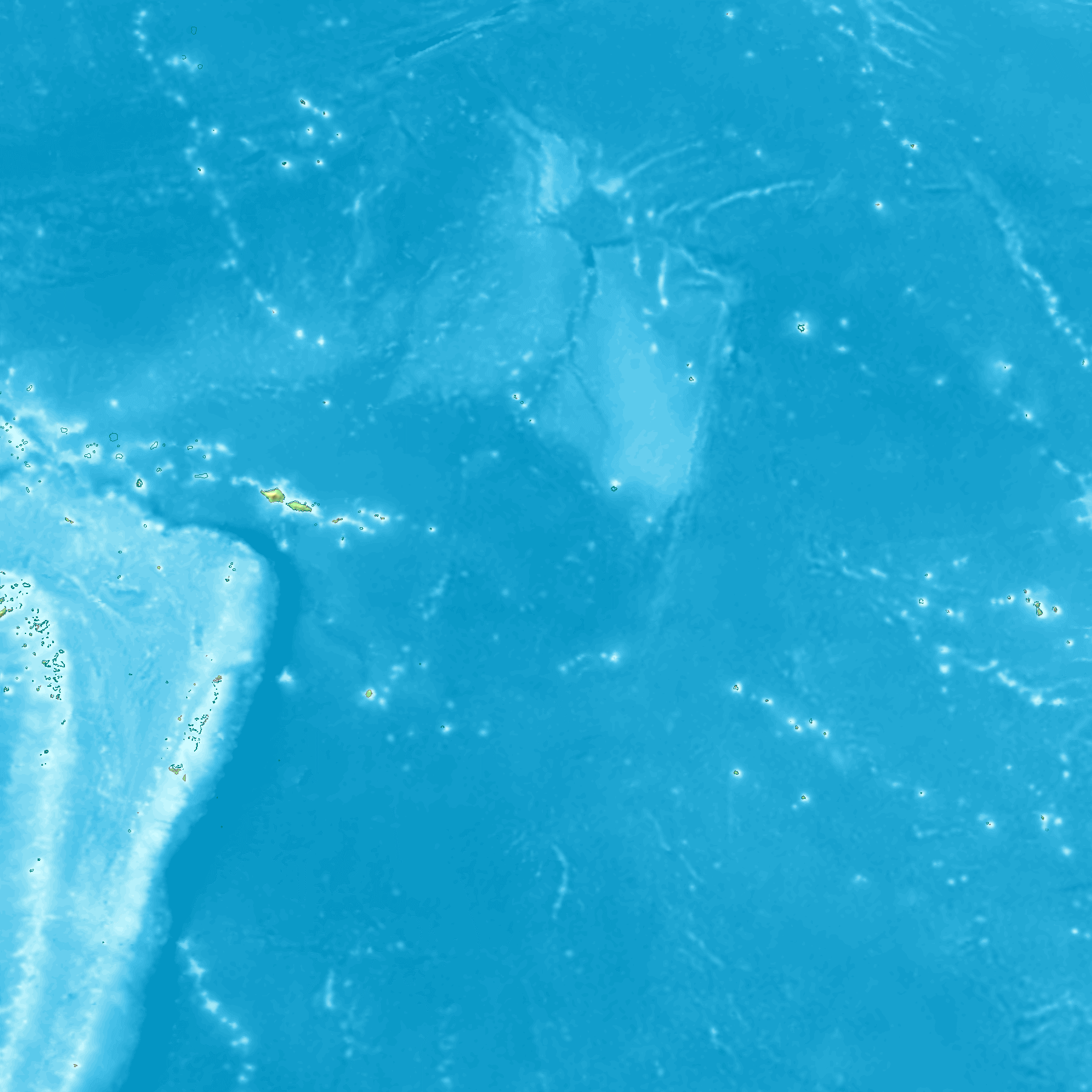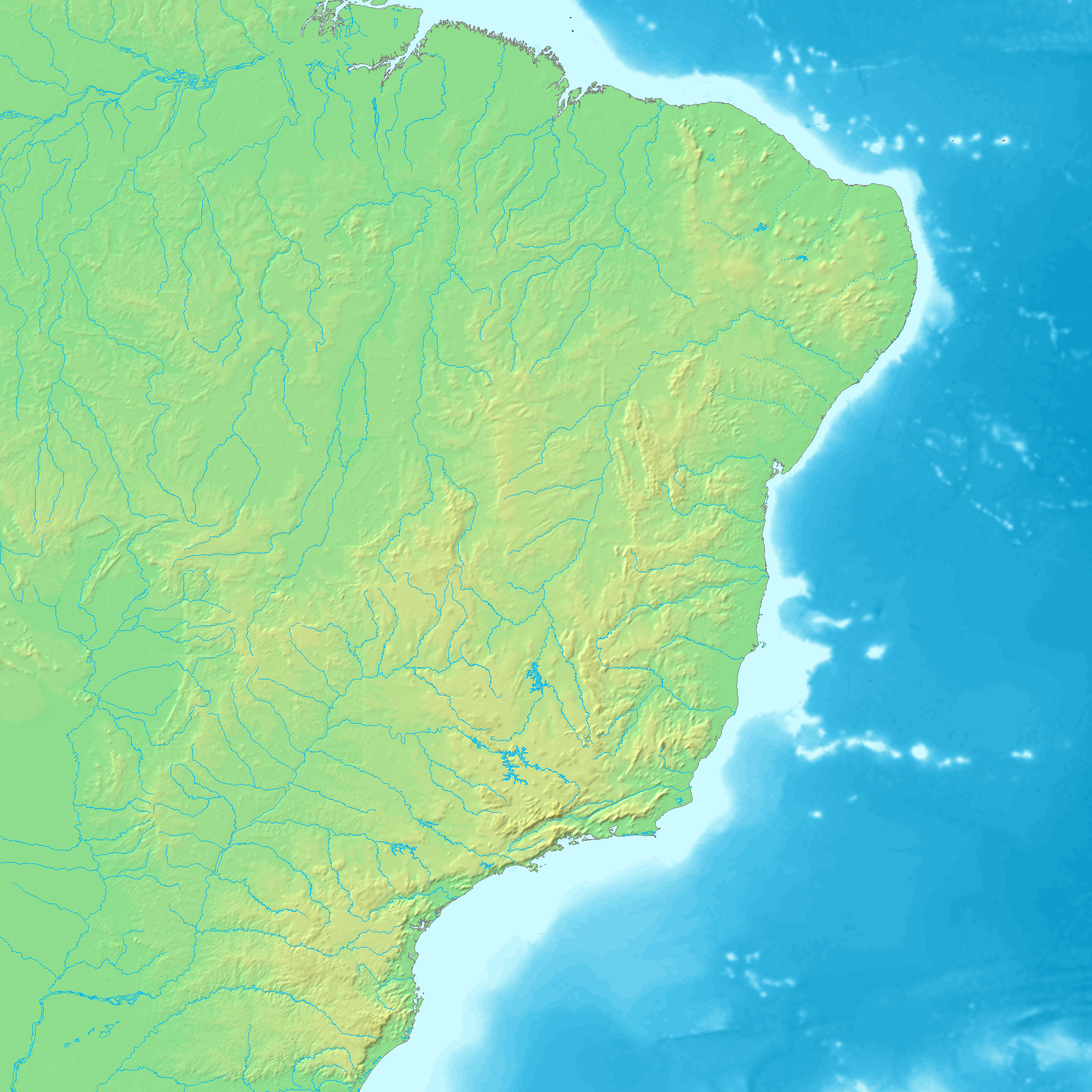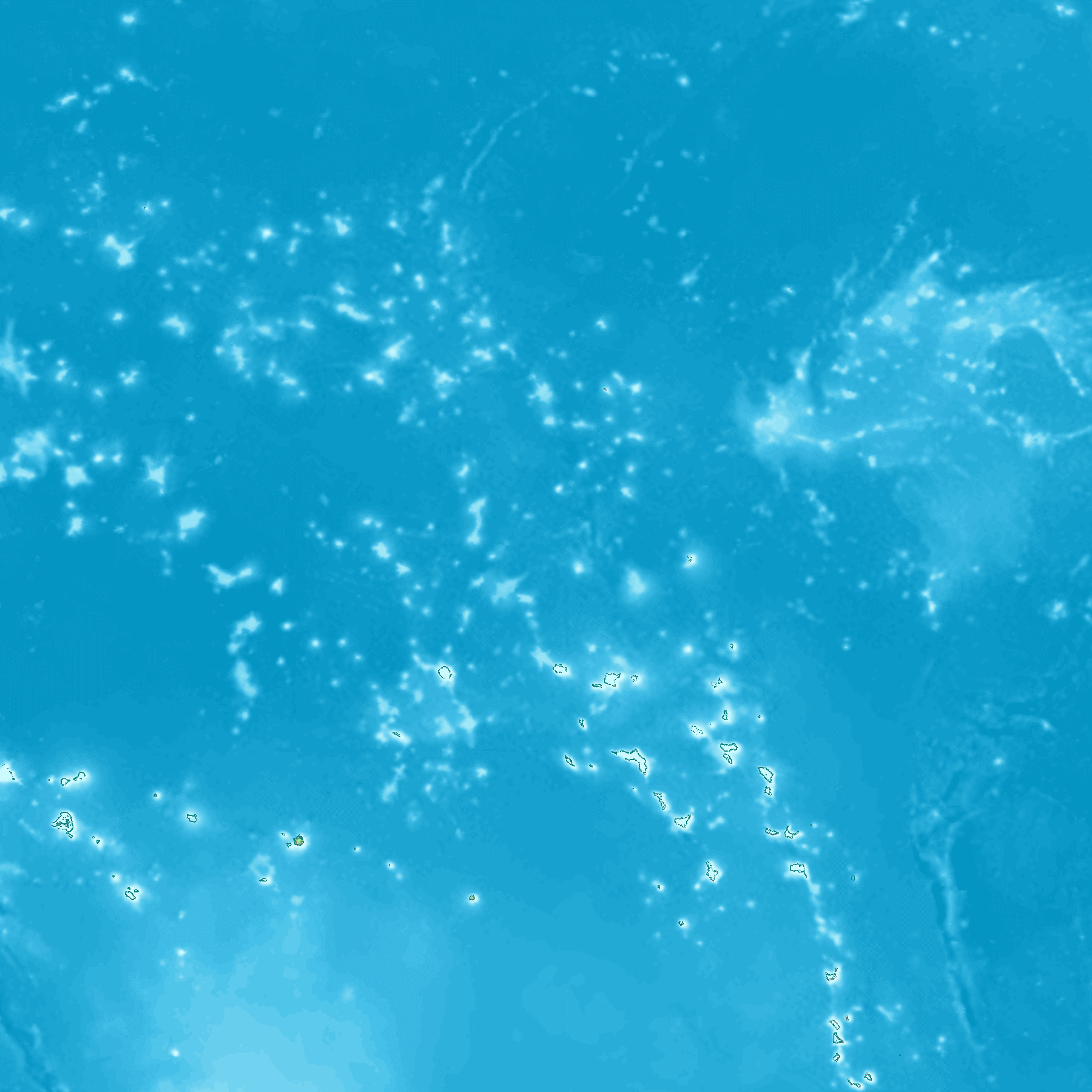 thumb으로 표현된 지구 표면(물과 얼음 포함)의 고도 맵으로, 8비트 회색조로 정규화되었으며, 밝은 값은 높은 고도를 나타낸다.]]