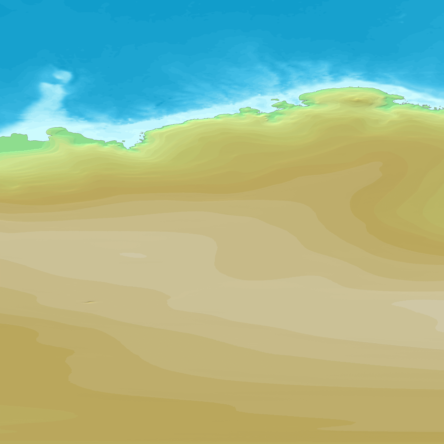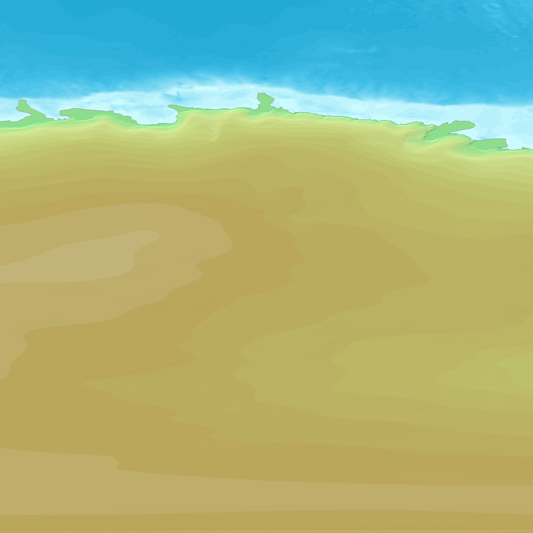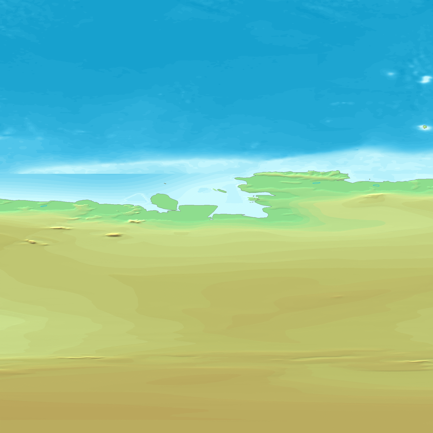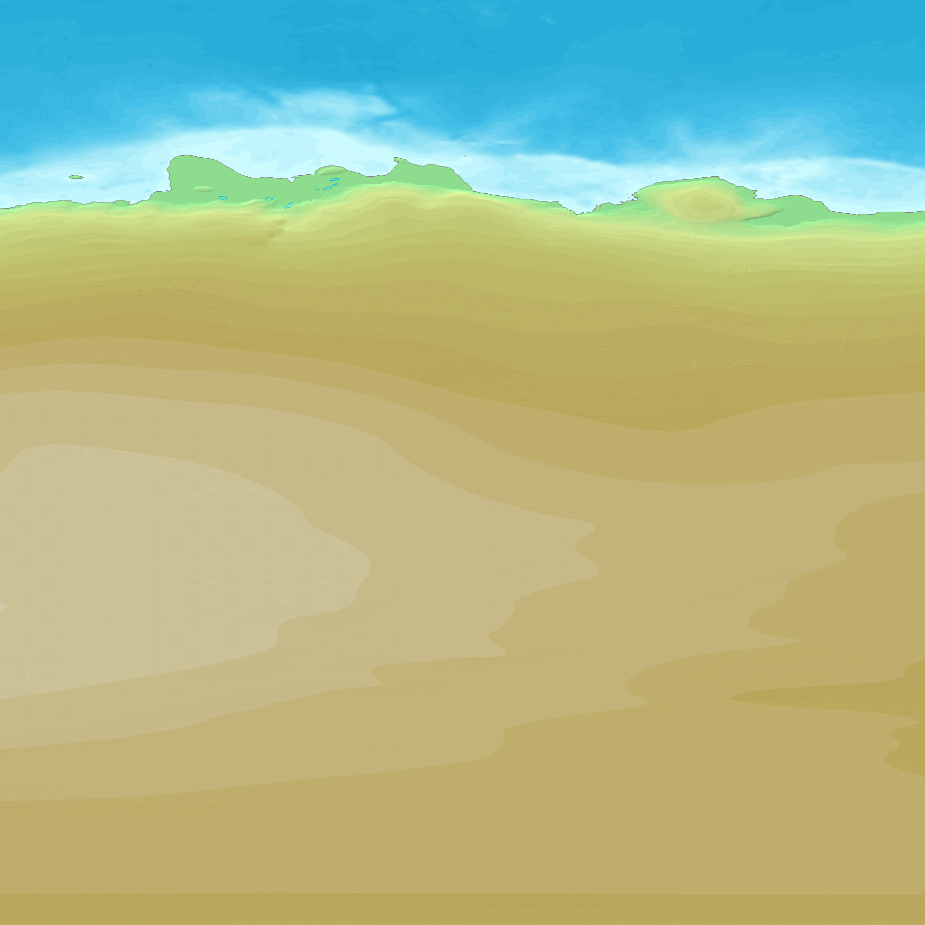 GTOPO30은 30초 간격(약 1km)으로 지구 지형의 높이를 나타내는 맵으로, 이 맵에서 각 지역의 높이를 도출한다. GTOPO30은 고도를 나타내기 위해 등고선 대신 색상과 음영을 사용한다.