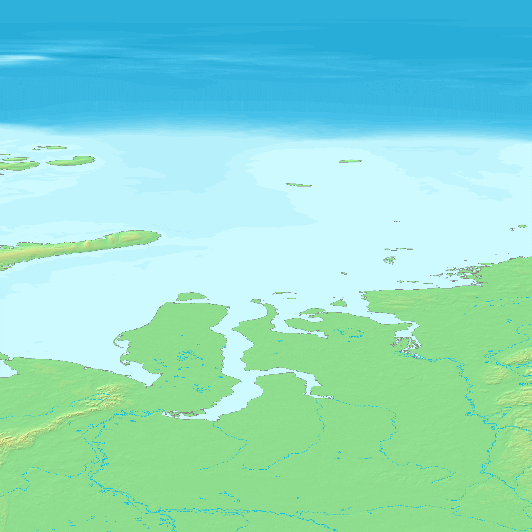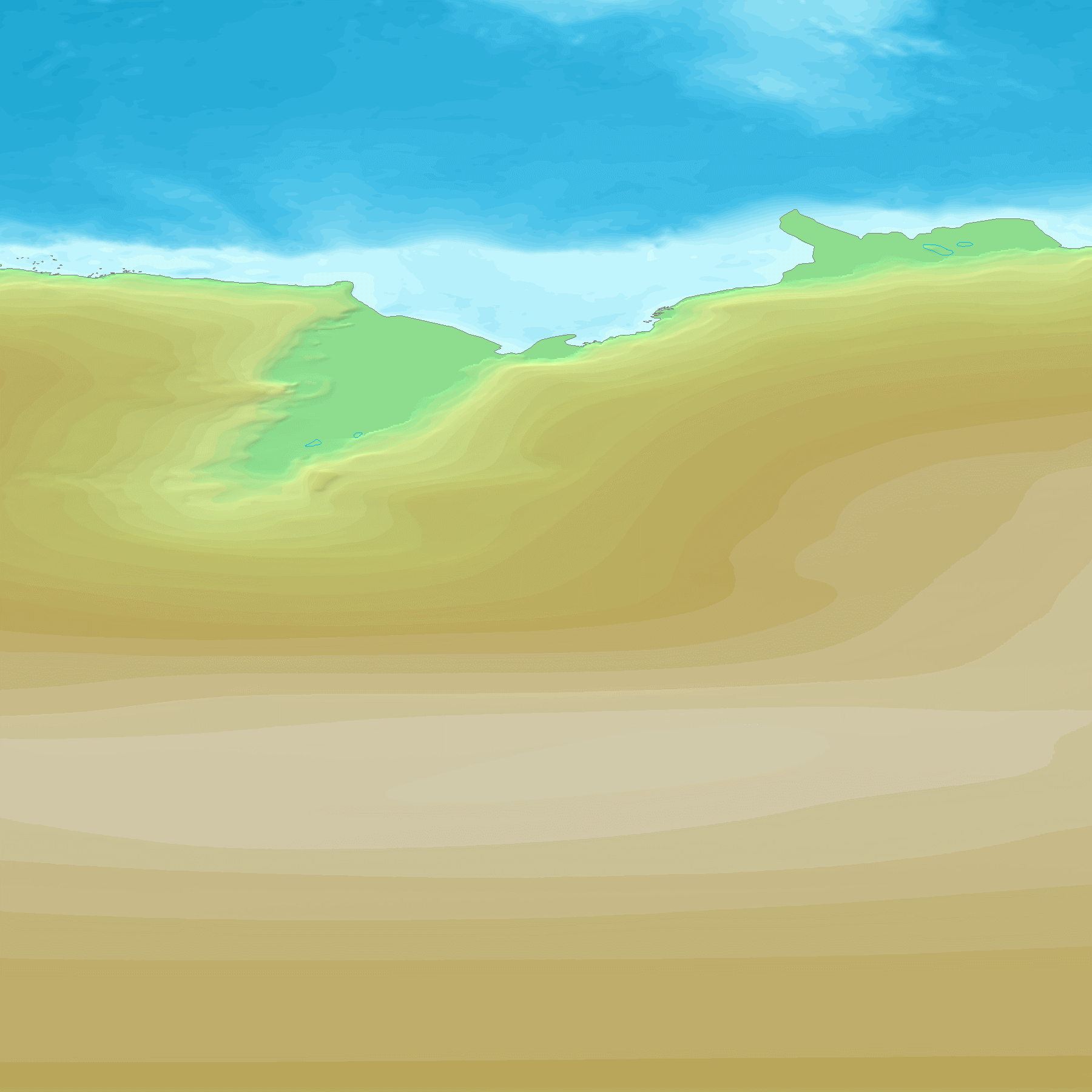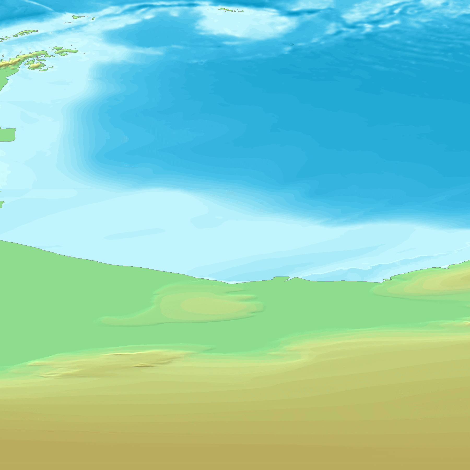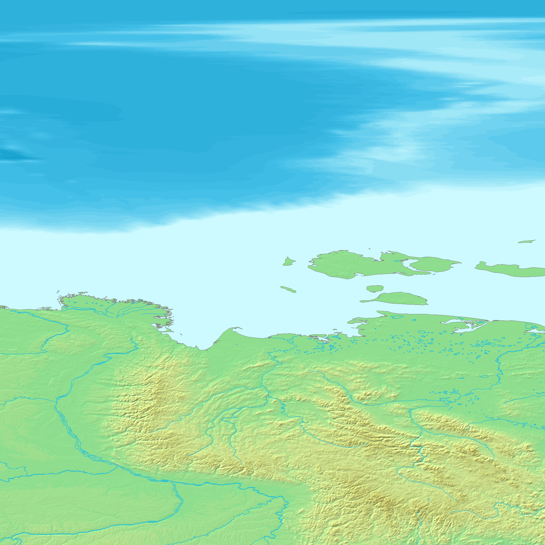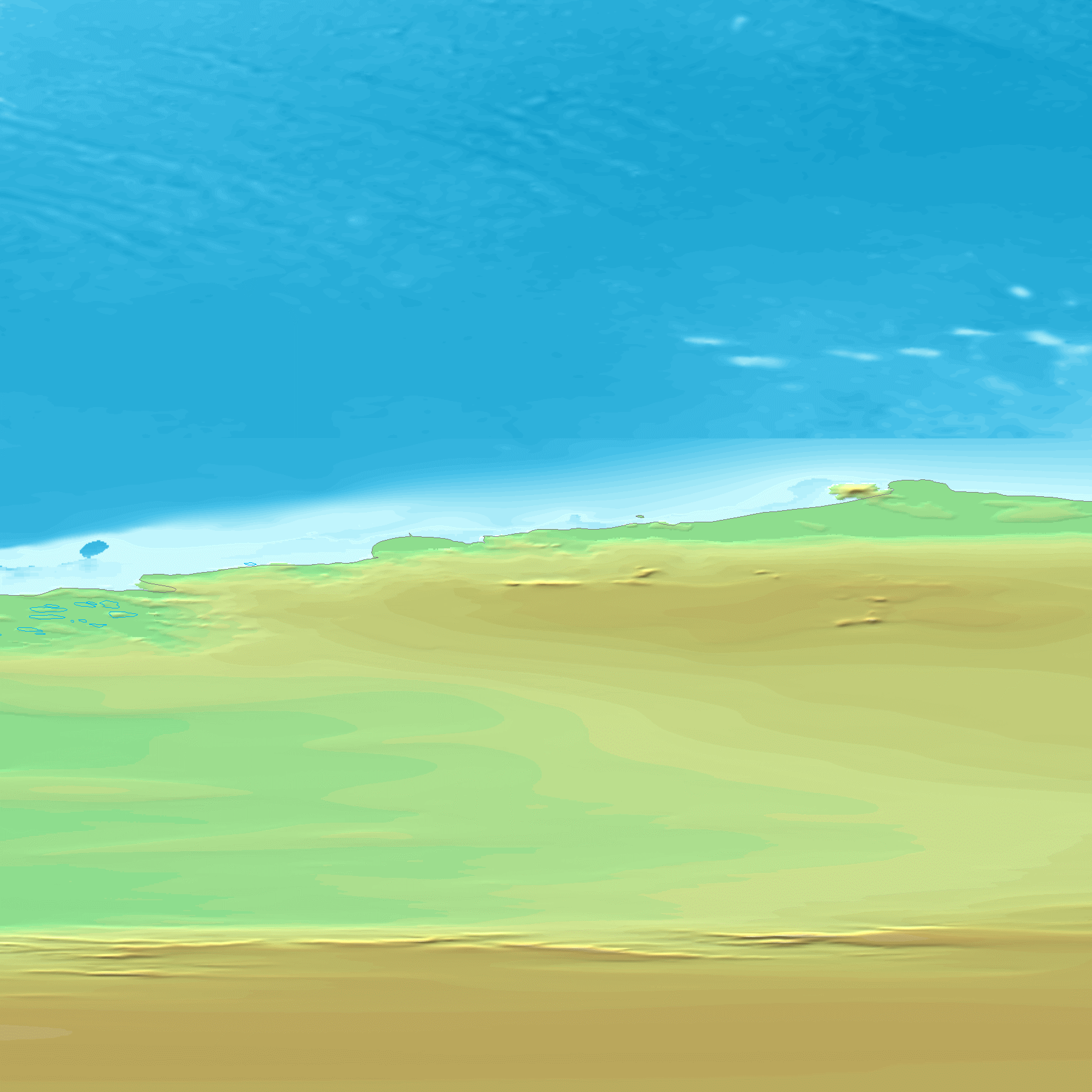 GTOPO30은 30초 간격(약 1km)으로 지구 지형의 높이를 나타내는 맵으로, 이 맵에서 각 지역의 높이를 도출한다. GTOPO30은 고도를 나타내기 위해 등고선 대신 색상과 음영을 사용한다.