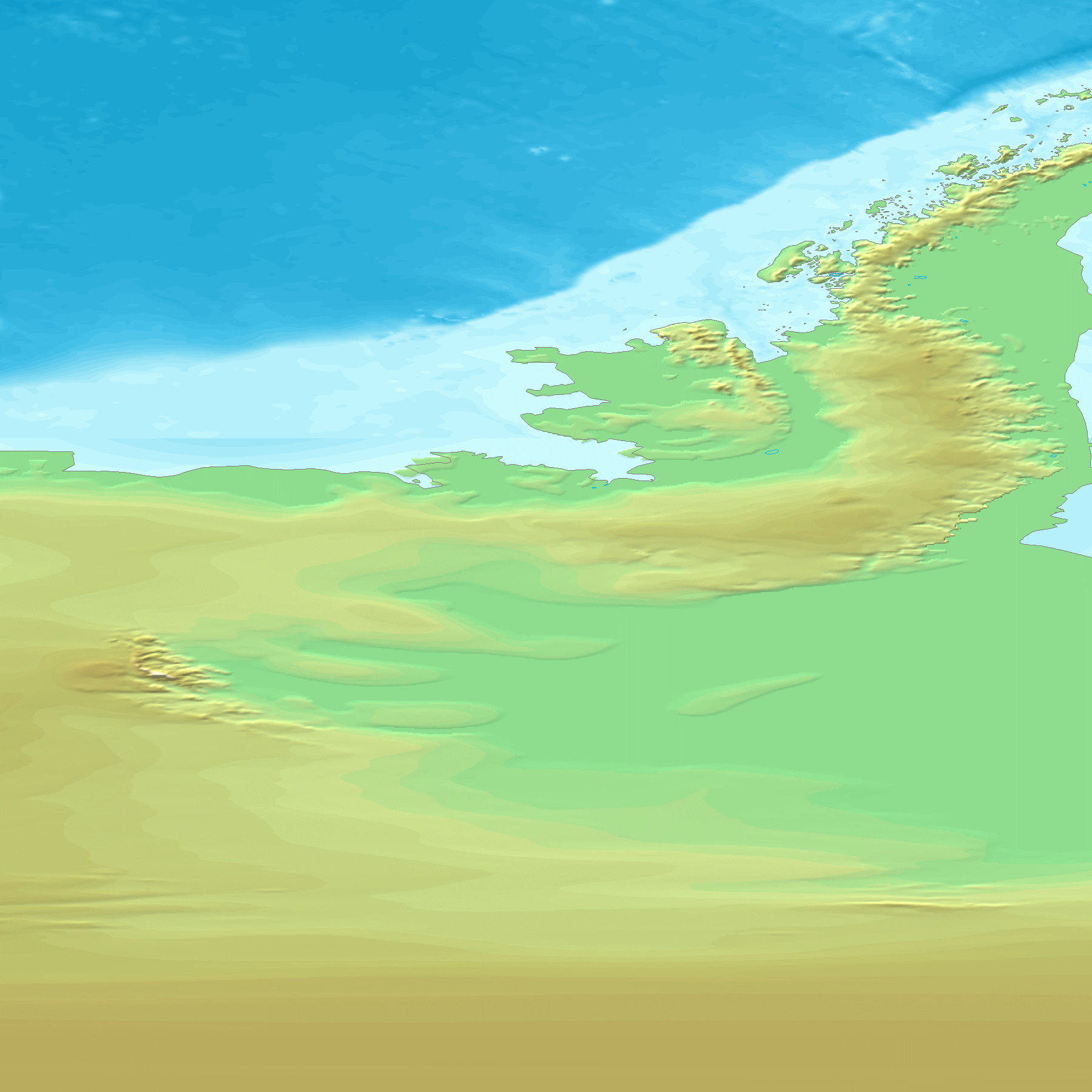 GTOPO30은 30초 간격(약 1km)으로 지구 지형의 높이를 나타내는 맵으로, 각 지역의 높이를 도출한다. GTOPO30은 고도를 나타내기 위해 등고선 대신 색상과 음영을 사용한다.