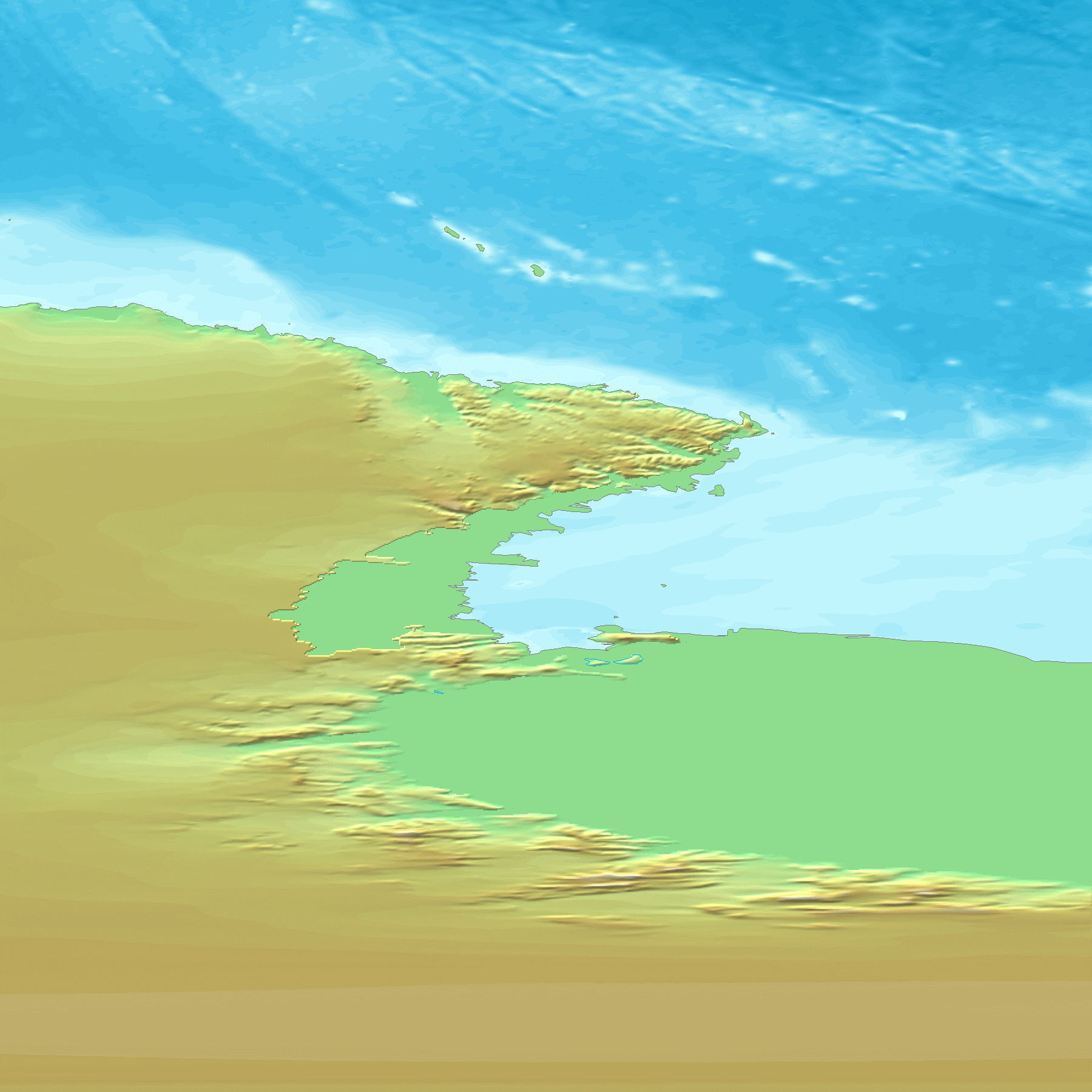 PIA04961: Cape Town, South Africa, Perspective View, Landsat Image over SRTM Elevation