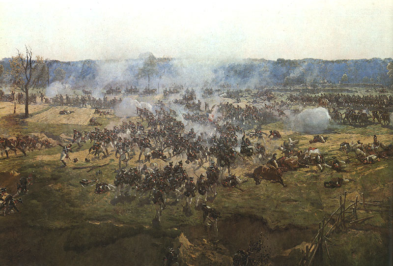 > 끔찍한 전투가 벌어졌고, 양측 모두 거의 초자연적인 용기의 기적을 보여주었다. 보병, 기병, 양측의 포병들은 서로 섞여 끔찍한 광경을 연출했고, 병사들의 거대한 덩어리가 사적인, 격렬한 절망 속에서 고군분투했다.[8]