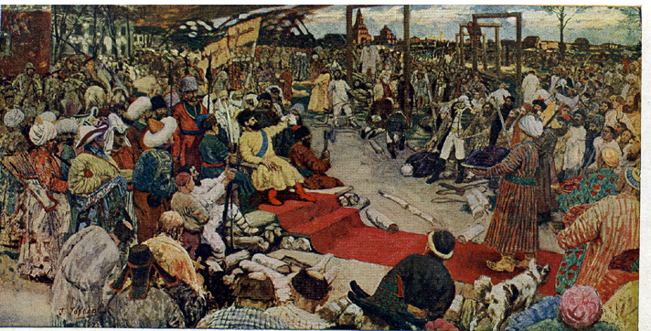 푸가초프의 난은 1773년부터 1775년까지 예멜리얀 푸가초프가 표트르 3세를 사칭하며 농민과 코사크를 규합하여 일으킨 대규모 반란이다. 표트르 1세와 예카테리나 2세 치하에서 심화된 농노제와 사회적 불만이 주요 원인이 되었으며, 푸가초프는 농민들에게 토지와 자유를 약속하며 세력을 확장했다. 반란은 정부의 초기 미흡한 대응과 러시아-튀르크 전쟁으로 인한 군사력 부족으로 인해 카잔을 점령하는 등 확산되었으나, 결국 정부군의 반격으로 진압되었고 푸가초프는 처형되었다. 이 사건은 러시아 정부의 지방 통제력 약화와 농노제의 심각성을 드러냈으며, 예카테리나 2세의 개혁 시도를 이끌었지만, 농노제 폐지와 같은 근본적인 사회 개혁은 이루어지지 않았다. 푸가초프의 난은 러시아 사회에 큰 영향을 미쳐 문학과 예술의 소재가 되었으며, 이후 러시아 역사와 문화에 중요한 사건으로 평가받는다.