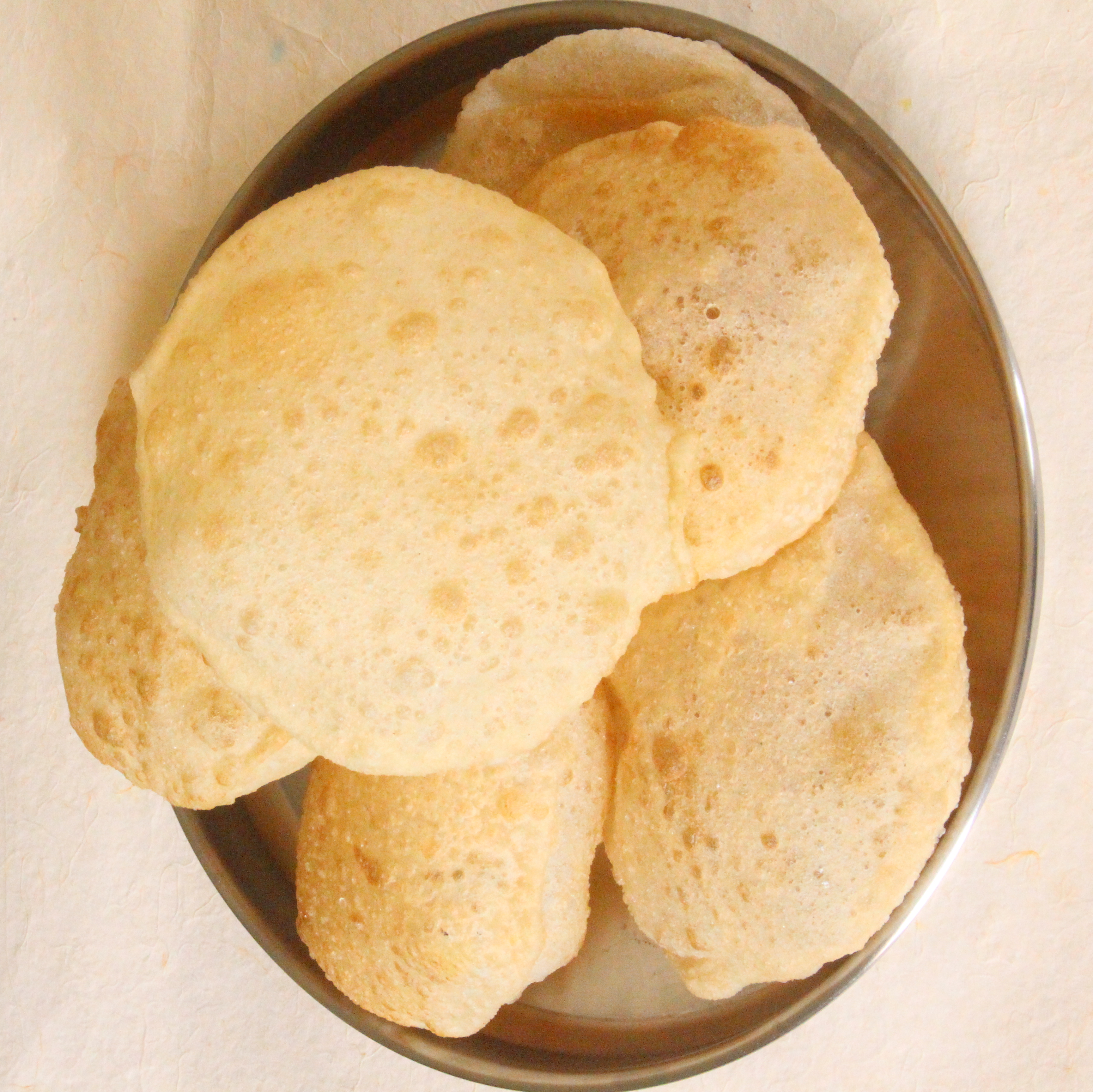 푸리는 남아시아에서 유래된 튀긴 빵의 일종이다. 밀가루 반죽을 얇게 밀어 튀겨서 만들며, 산스크리트어 '푸리카'에서 유래되었다. 푸리는 다양한 종류가 있으며, 아타 가루(통밀가루)나 수지(거친 밀가루)를 사용하고, 아즈와인, 커민 씨앗, 시금치 등을 첨가하기도 한다. 튀기는 과정에서 부풀어 오르며, 황금빛 갈색이 되면 꺼내어 뜨겁게 먹거나 다른 요리에 사용된다. 종류로는 수하리, 루치, 베드미 푸리, 카미레/암블리안, 바투루, 토트루, 툰카 푸리 등이 있으며, 파니푸리나 세브 푸리와 같은 간식에도 사용된다.