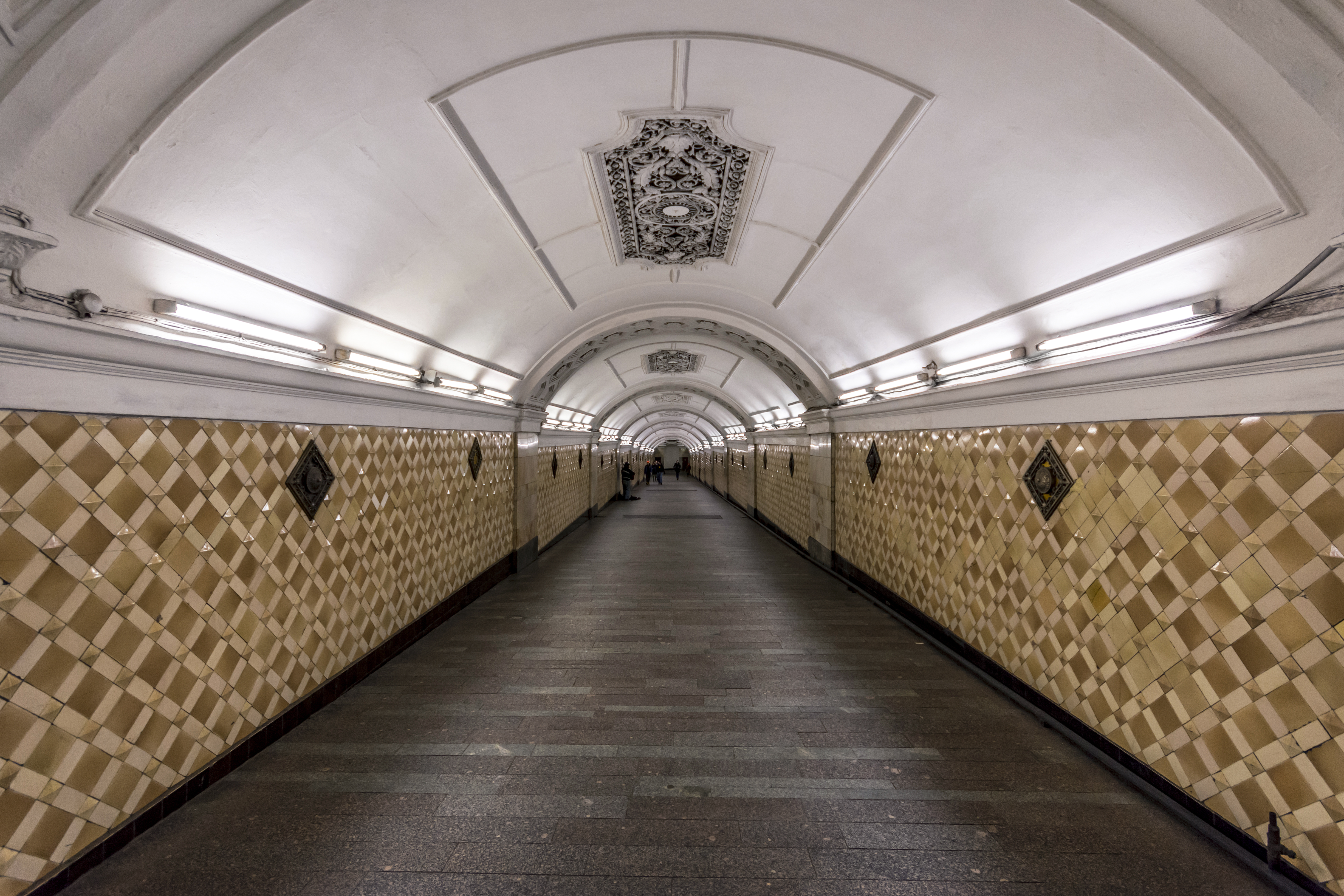 알렉세이 두시킨이 설계하여 1938년에 개장한 이 역은 검은색 아르메니아산 대리석으로 마감된 낮은 파일런(pylon) 위에 붉은색과 노란색 대리석 아치가 특징이다. 아치 사이의 공간은 장식적인 환기 그릴과 천장 트레이서리(tracery)로 부분적으로 채워져 있다.