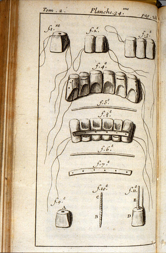 1728년 피에르 포샤르는 《치과외과의(Le Chirurgien Dentiste)》를 출간했다.[2] 이 책은 2권으로 구성되었으며, 1권에는 38장, 2권에는 26장으로 치의학 교육, 치아 해부학, 충치, 병리학, 치료학, 교정학, 외과, 재식립 및 이식, 구강 질환, 치주농루, 출혈 및 지혈제, 수술 및 보철 치의학 등을 다루었다.[4] 또한, 석판화로 제작된 수술 도구 및 기기 42개가 포함되어 있었다.[4]