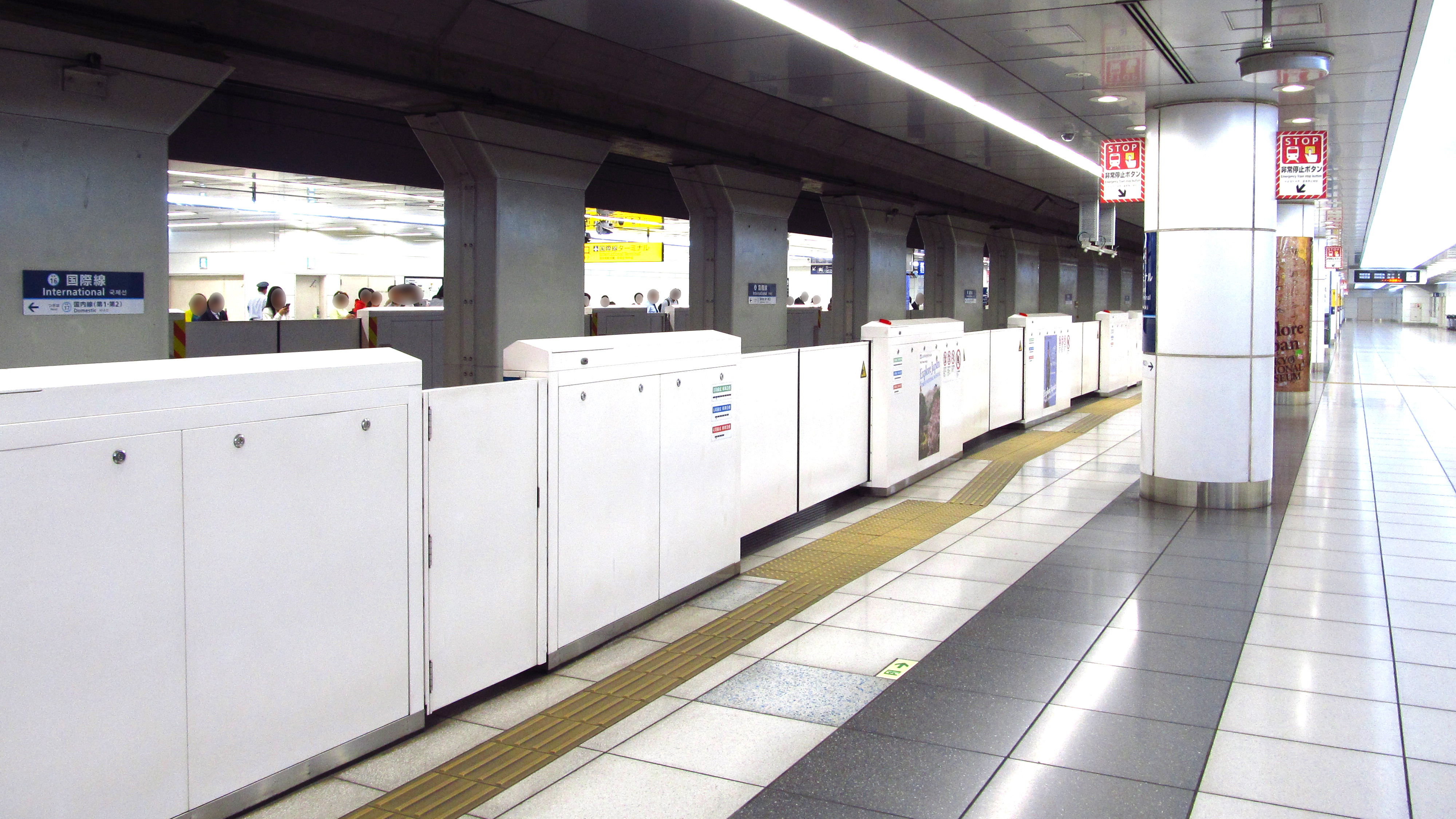 이 역은 터미널에서 짐용 카트를 승강장까지 가지고 올 수 있도록 승강장 폭이 14m로 넓어졌고[27], 카트의 선로 전락을 방지하기 위해 게이큐 역에서 처음으로 스크린도어가 설치되었다. 이 때문에 800형은 공항선에 영업 운전으로 입선하지 않게 되었다.
