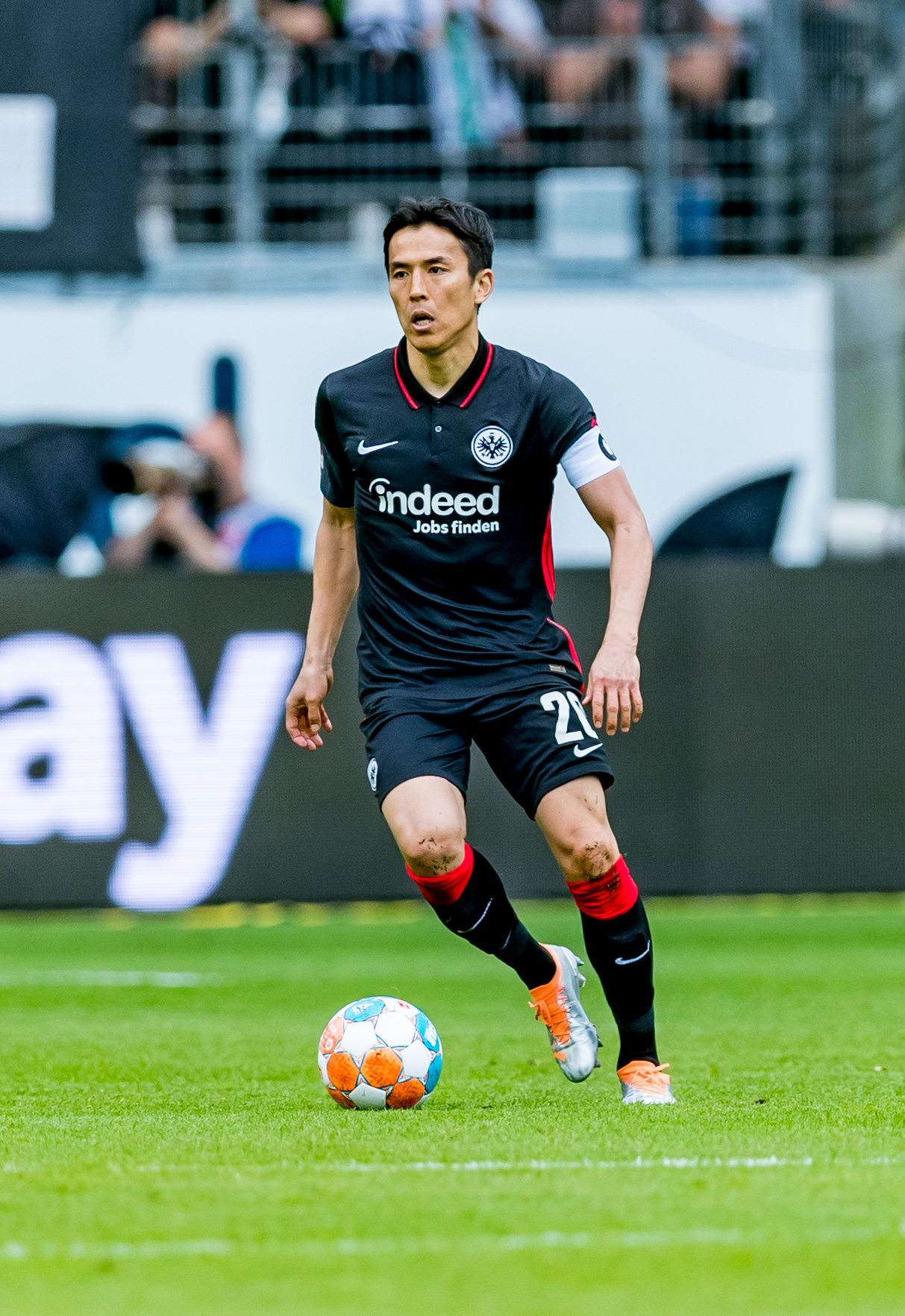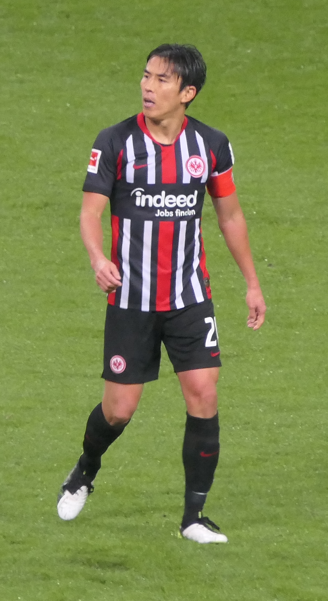 Hasebe Makoto|하세베 마코토de는 2014-15 시즌 분데스리가의 아인트라흐트 프랑크푸르트로 이적하여 첫 시즌 단 한 경기를 제외하고는 모든 경기에 출전하는 주전 선수가 되었다.[33] 2015-16 시즌에도 프랑크푸르트의 미드필더로 활약했지만, 뉘른베르크와의 강등 플레이오프에서 간신히 잔류하는 데 그쳤다.[36] 2016년 10월 말 프랑크푸르트의 신임 감독 니코 코바치 체제 아래, 하세베는 처음으로 중앙 수비수로 기용되어 5백의 중심축 역할을 맡았고, 이후로도 이 포지션에서 뛰었다.[37]2017-18 시즌, 아인트라흐트 프랑크푸르트와 함께 분데스리가 8위를 기록했고, DFB-포칼 결승전에 진출했다. 2018년 5월, 팀은 FC 바이에른 뮌헨을 3-1로 꺾고 30년 만에 우승을 차지하며 UEFA 유로파리그 조별 리그 진출권을 획득했다.[46] 다음 시즌 유로파리그에서 그는 팀의 14경기에 모두 전 경기를 소화했고, 샤흐타르 도네츠크, 인터 밀란, 벤피카 리스본을 차례로 꺾고 준결승에 진출했으나, 첼시 FC와의 승부차기에서 패했다.