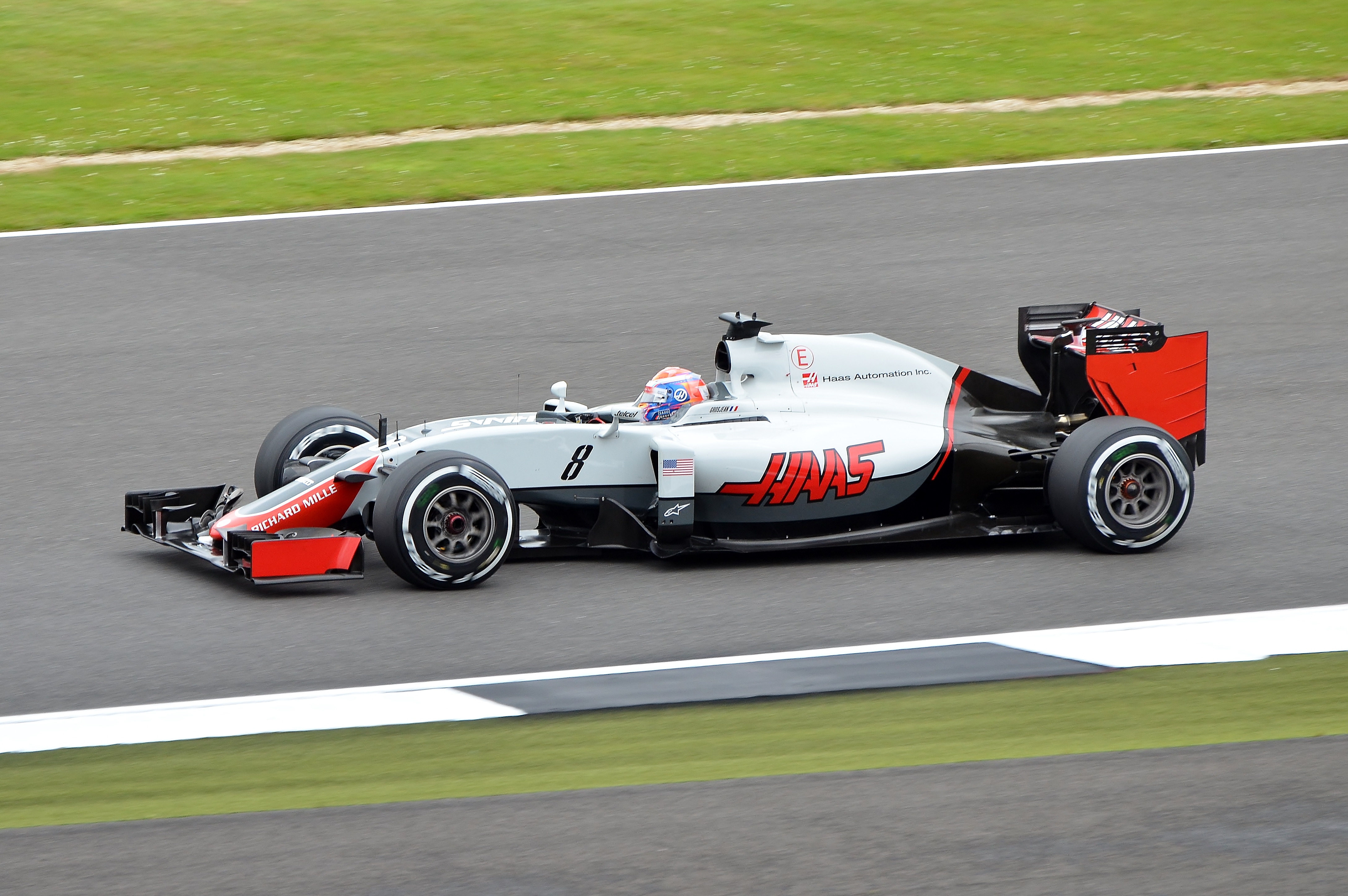 2015년 9월, 로터스에서 로맹 그로장의 이적이 발표되었고, 세컨드 드라이버로 페라리의 리저브 드라이버였던 에스테반 구티에레즈를 영입했다. 하스 F1의 첫 레이스였던 개막전 오스트레일리아 GP에서는 예선에서 두 선수 모두 Q1에서 탈락했지만, 결승에서 그로장이 6위를 차지하며 팀 창단 첫 출전에서 포인트를 획득하는 쾌거를 달성했다. 다음 경기에서도 5위를 차지하며 연속 입상했지만, 중국 GP에서 타이어 최소 내압 변경에 대해 그로장이 불만을 제기하며 입상에 실패했다.