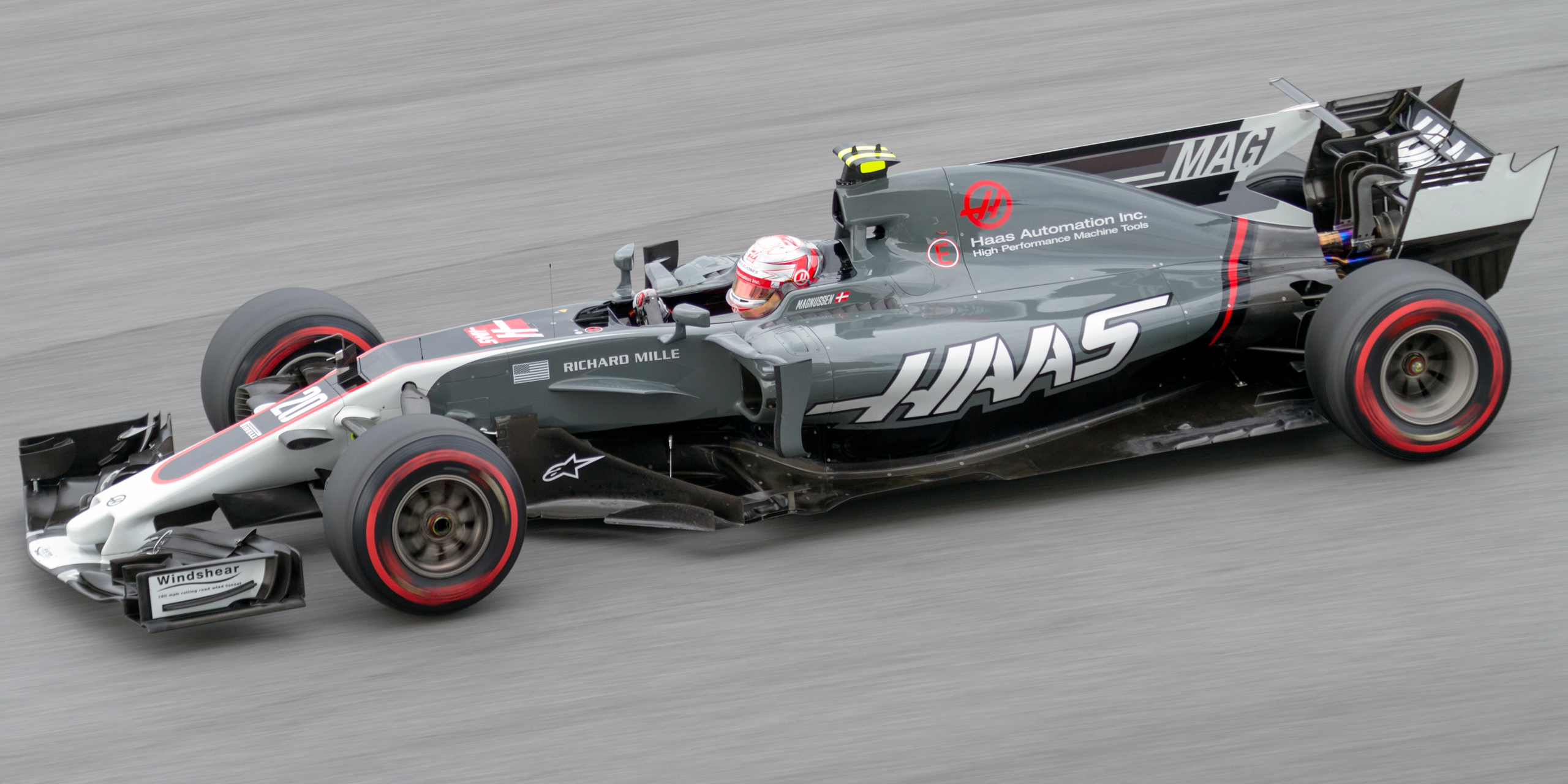 2017년에는 케빈 마그누센이 로맹 그로장과 함께 달리며, 에스테반 구티에레즈를 대신했다.[31] 시즌 첫 레이스에서 VF-17을 몰고 6위를 차지하며 역대 최고의 예선 성적을 거두었으나, 레이스에서는 두 차량 모두 기계적 고장으로 리타이어했다.[32][33][34] 두 번째 레이스에서 마그누센이 8위를 기록하며 2016년 싱가포르 그랑프리 이후 처음으로 포인트를 획득했고, 하스는 2016년 미국 그랑프리 이후 처음으로 포인트를 획득했다.[35][36]