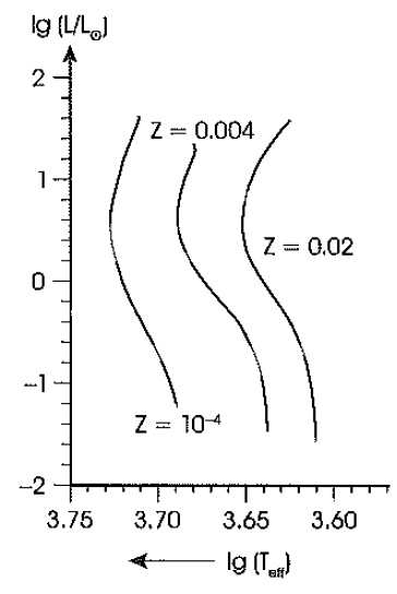 별의 금속 함량(Z)이 증가하면 분자량이 증가한다. 온도가 분자량에 미치는 영향은 매우 가파르다. 금속 함량을 10분의 1로 감소시키면 하야시 경로는 오른쪽으로 이동하며, 를 약 0.05만큼 변경한다.