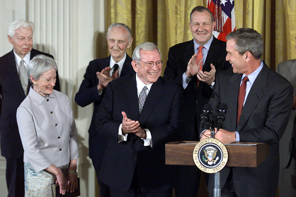 2001년 대통령 조지 W. 부시(George W. Bush)와 함께 있는 베이커