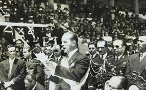 1951년 과테말라 대통령 취임식에서 군중에게 연설하는 야코보 아르벤스 구스만