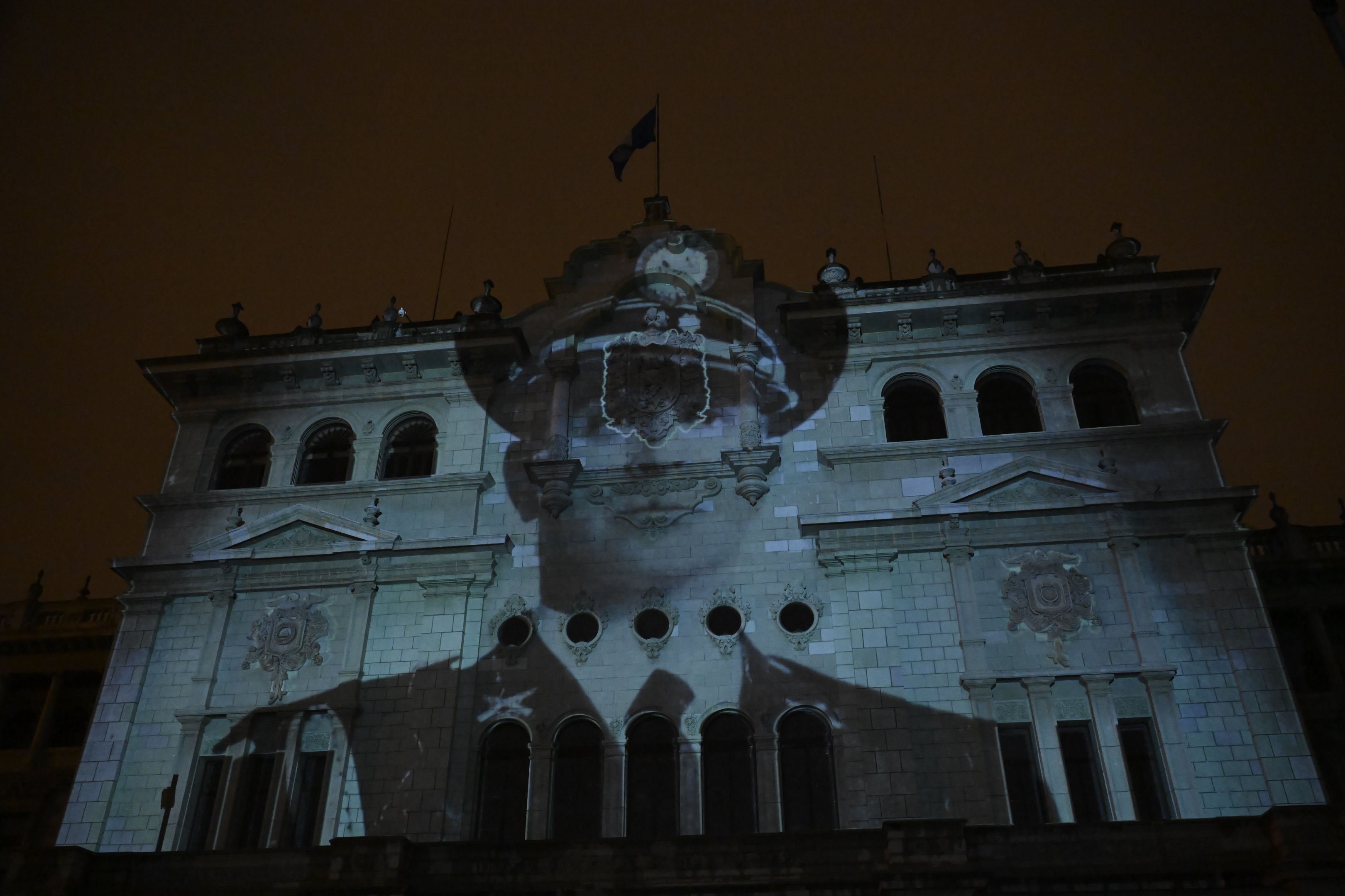 2024년 혁명 기념 공식 행사에서 국가 궁전에 투영된 아르벤스의 사진