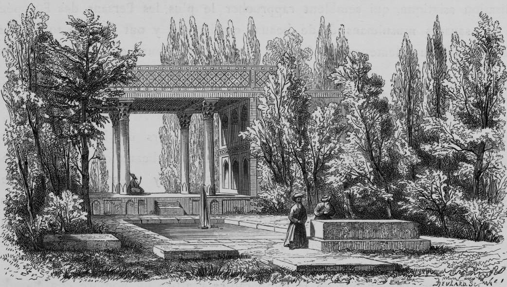 하페즈는 1315년 시라즈에서 태어나 1390년 그곳에서 사망했다. 이란 국민들이 그의 시를 암송할 정도로 사랑받는 인물인 하페즈는 고향에서 명성이 높았고 궁정 시인으로 지냈다. 1452년 티무르 왕조의 통치자 아불-카심 바부르 미르자의 명령에 따라 시라즈의 골가스트-에 모살라(현재 무살라 정원으로 알려짐)에 있는 그의 무덤 근처에 작은 돔 형태의 구조물이 세워졌다. 19000m2가 넘는 면적의 이 정원에는 시라즈의 묘지 중 하나가 있었으며, 바부르는 기념관과 동시에 이곳에 연못을 지었다. 페르시아의 아바스 1세와 나데르 샤는 이후 300년 동안 하페즈의 시에 나오는 징조에 따라 명령을 받았다고 믿고 별도의 복원 사업을 수행했다.