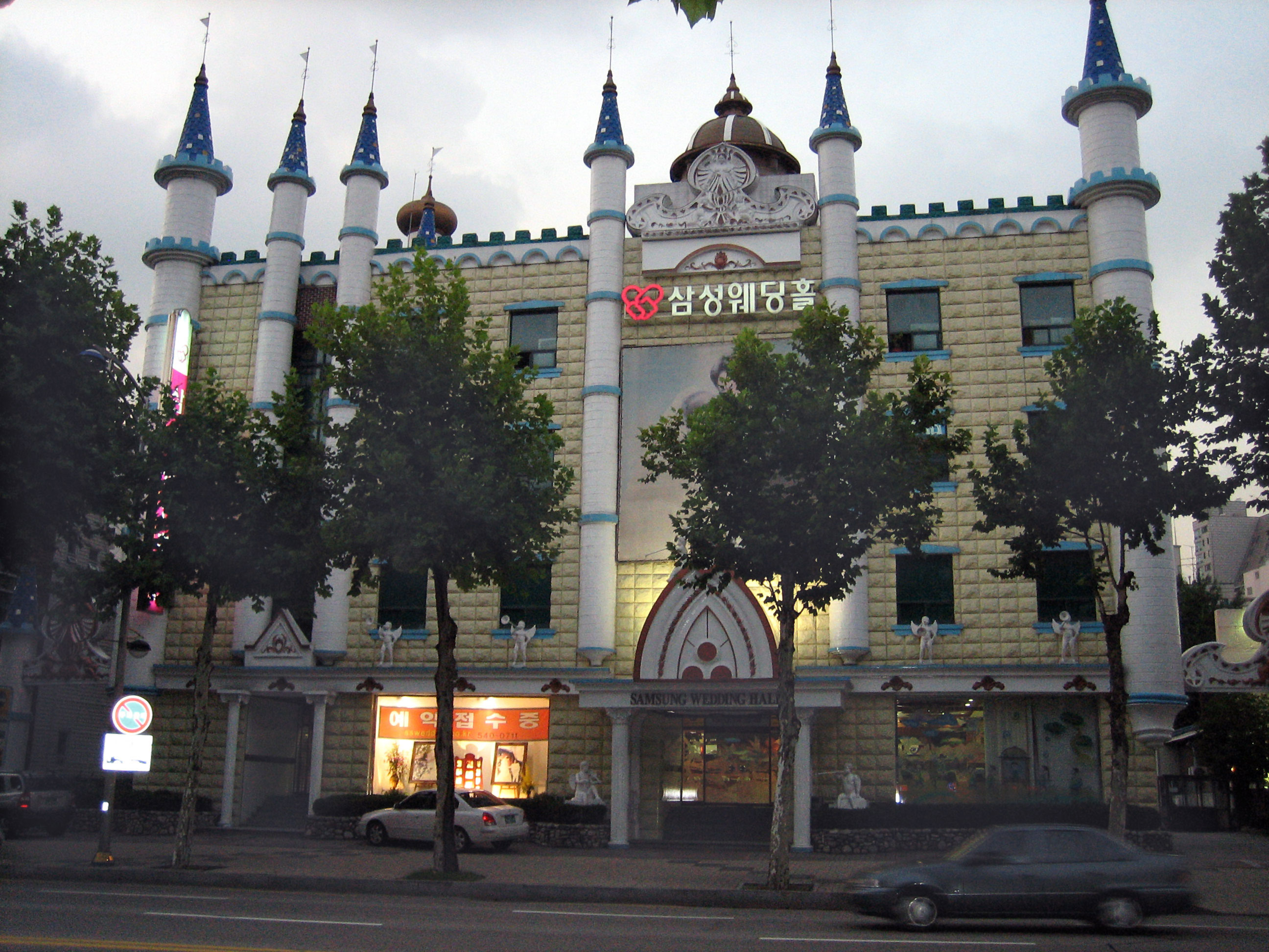 대도시의 고급 호텔에는 결혼식만을 위해 사용되는 '웨딩홀'이나 무도회장이 있다. 이 공간들은 결혼식 테마로 장식되어 신혼부부에게 임대된다. 다른 웨딩홀들은 여러 결혼식을 동시에 수용할 수 있는 독립된 시설이다. 많은 신혼부부들이 서구화된 결혼식을 먼저 올린 후, 본식 후에 소규모의 전통 한국 결혼식을 진행하기도 한다.[53]