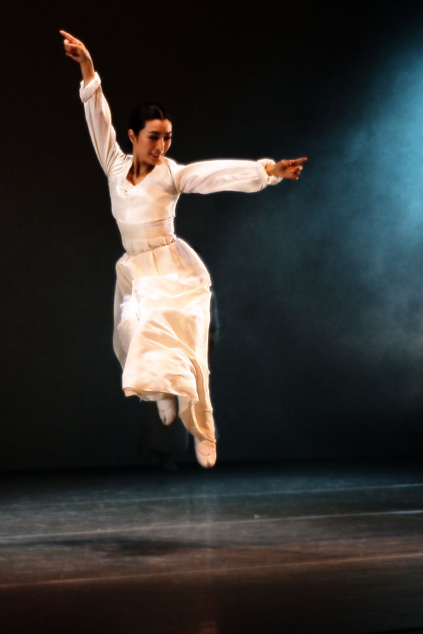 몸에 달라붙게 하고 움직임을 용이하게 한 현대 한국무용복