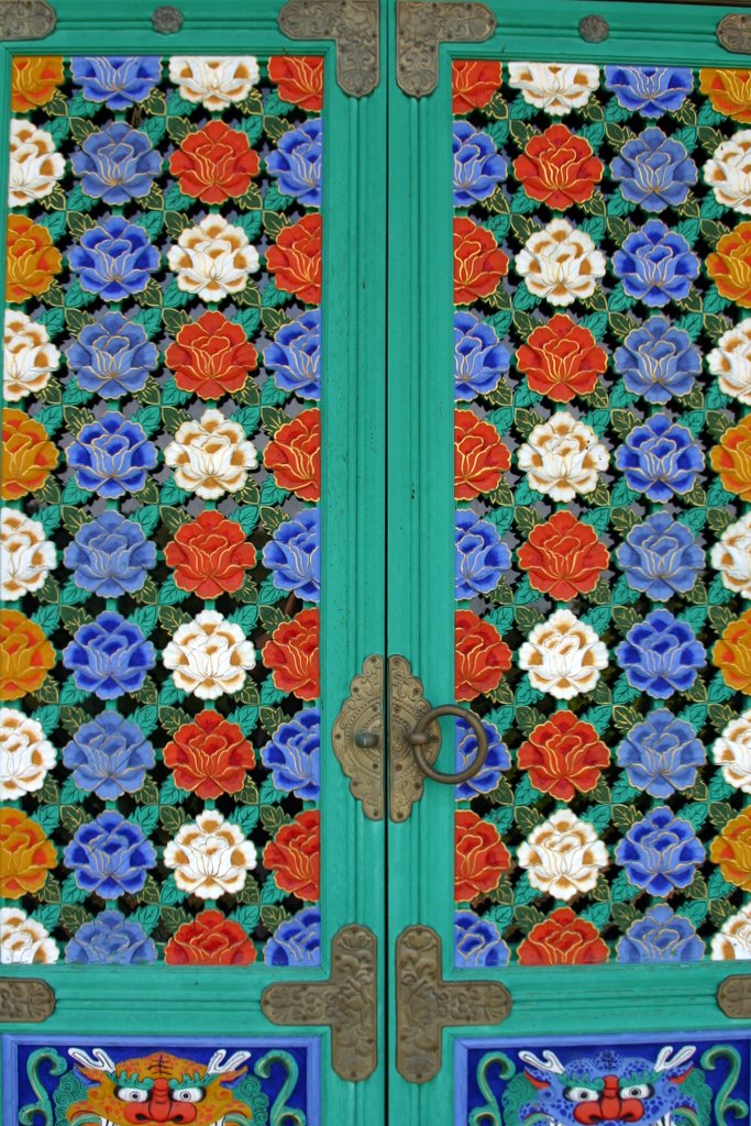 한국 전통 문양은 건축물, 일상 용품, 불교 사찰의 유물에 사용되어 불교를 더욱 강조하였다. 문양을 만드는 주된 목적은 장식이었으며, 종종 물체를 보호하는 기능을 했다. 예를 들어, 단청은 나무 구조물에 다양한 문양을 칠한 한국의 유물이다. 단청 문양을 만드는 이유는 비나 바람으로 인한 부식을 막기 위해서였다. 단청은 특히 한국에 중요한 색상인 파란색, 빨간색, 검은색, 노란색, 흰색, 검은색을 보여주는 데 유용했다.[5]궁궐에서는 품계와 지위가 예복에 수놓인 문양을 통해 나타났다. 왕의 예복인 곤룡포에는 금색 용이 수놓아졌고, 문관의 예복에는 학, 무관의 예복에는 호랑이가 수놓아졌다. 동물들의 수는 품계를 나타냈다.[6] 일상생활에서는 포장, 천 조각, 베갯머리 양쪽에 붙이는 자수 패드, 나무 떡살 등에 문양이 사용되었다. 일반적으로 각 가문은 독특한 떡살 문양을 가지고 있었으며, 이 문양은 변경되지 않았고 다른 가문에서 사용하지 않았다.[7]