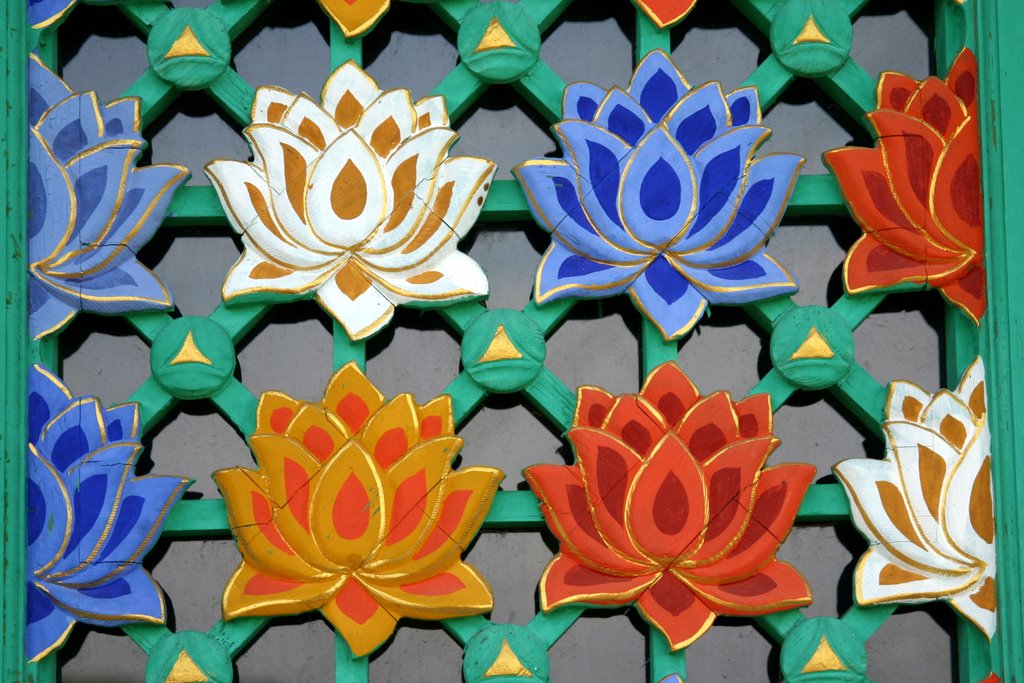 연꽃은 불교를 대표하는 꽃이다. 더러운 습지에서도 물들지 않는다는 점 때문에 순수한 상징으로 여겨졌으며, 연꽃은 불교에서 무관심한 태도와 정화를 의미한다. 여성적인 물건에 새겨진 연꽃은 창조와 번식을 상징한다. 또한, 연꽃 문양 근처에는 물새가 나타날 수 있는데, 이것은 생명의 씨앗을 얻는 것을 의미하며, 실제로 아들을 낳는 것을 의미한다.