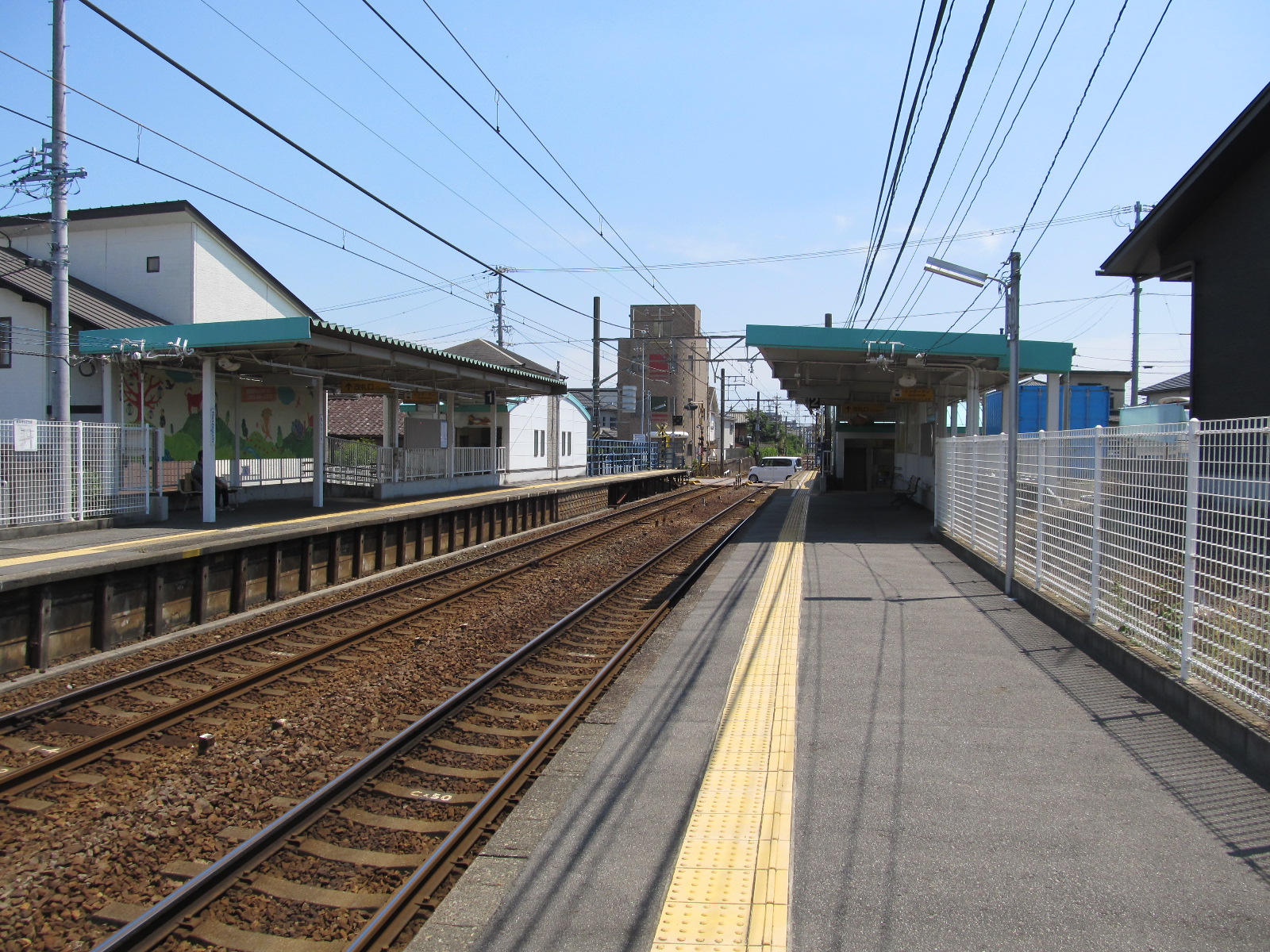 6량 편성 열차가 정차할 수 있는 상대식 승강장 2면 2선을 갖춘 지상역이다. 승강장은 평면 건널목으로 연결되어 있다. 역 집중 관리 시스템이 도입된 무인역으로, 2007년 3월 1일부터 시스템이 가동되었다. 이로 인해 기존에 있던 나고야 방면 출입구는 폐쇄되었다. 상하선 모두 지타한다 방면에 역사가 설치되어 있다.