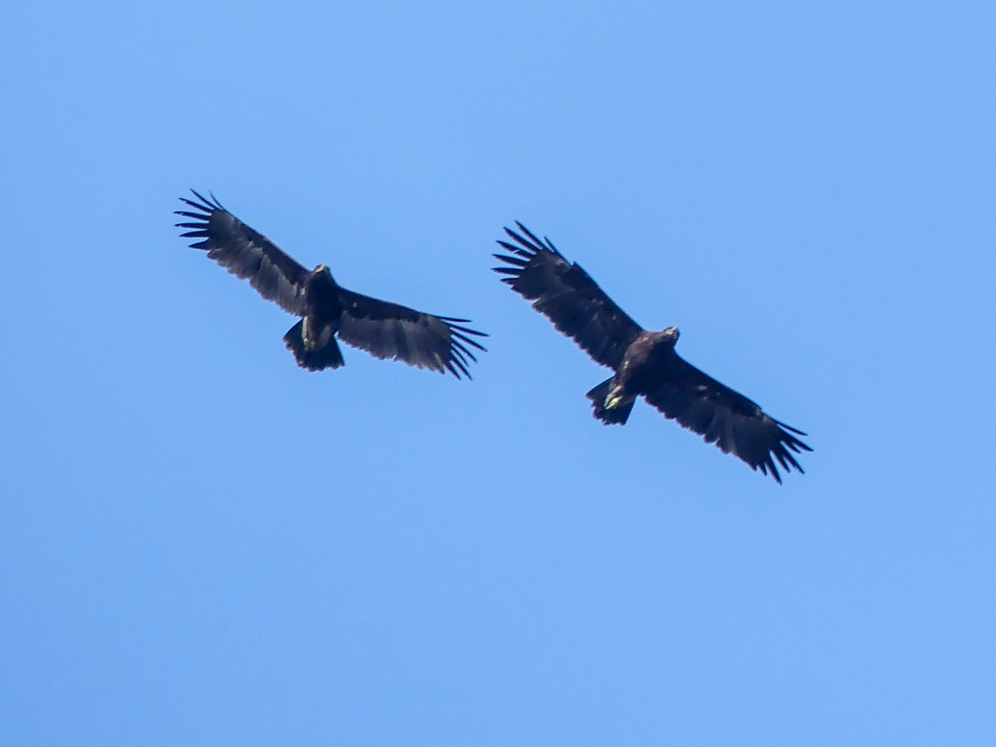 현재 광범위한 잡종 교배가 일어나는 것으로 알려져 있으며, 잡종은 두 종의 서식지가 겹치는 약 600000km2에 달하는 광범위한 지역에서 발생한다. 특히 잡종 교배는 검독수리의 동쪽 경계선과 거의 일치하는 유럽 러시아에서 주로 발생하는 것으로 추정되며, 이곳에서 잡종 교배가 가장 최근에 일어났을 가능성이 있다.[26][26][160]