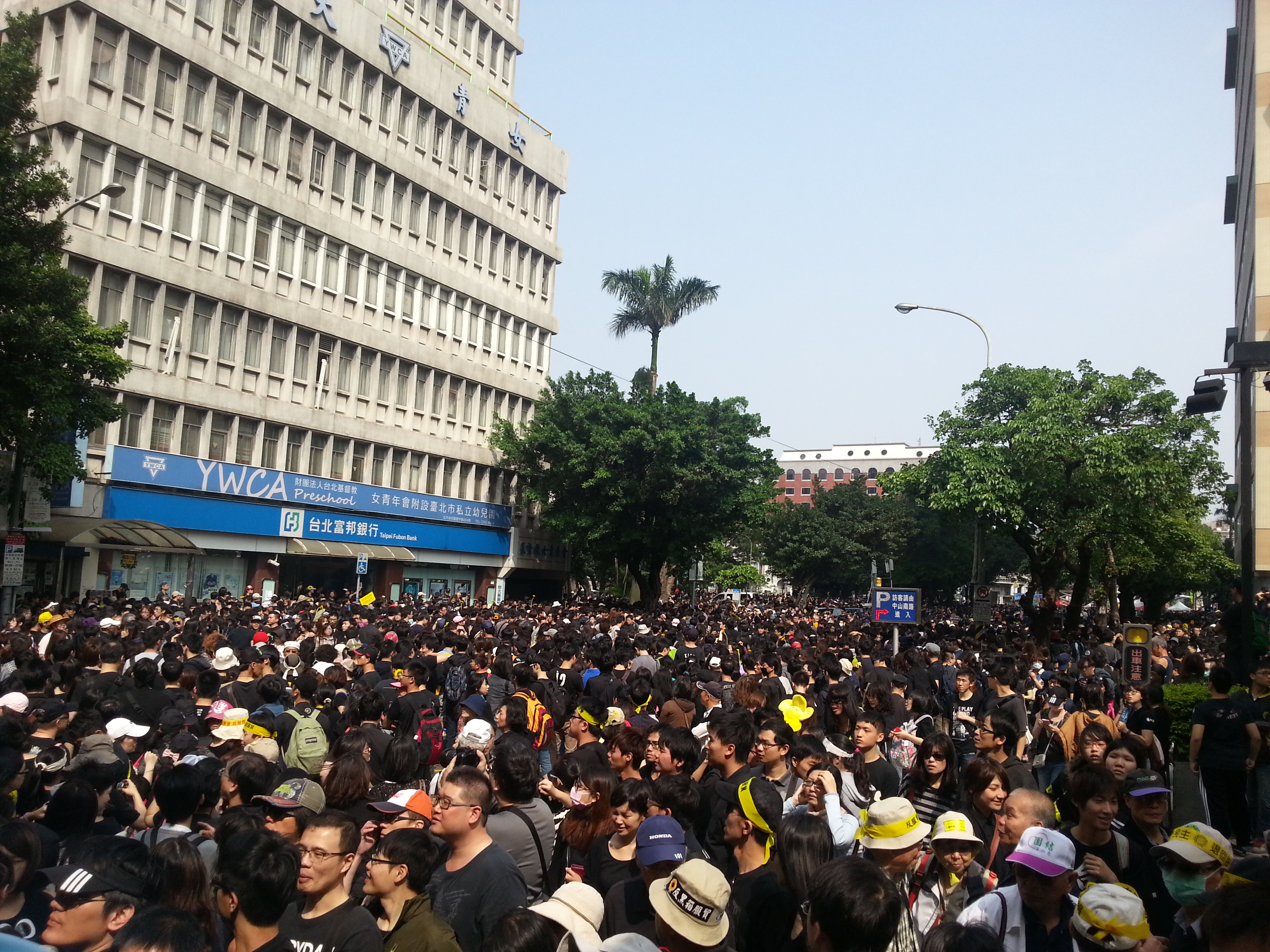 3월 30일, 양안서비스무역협정(CSSTA)에 항의하는 전국 대만 국민들은 타이베이시 대로에서 퍼레이드를 벌였다. 약 10만 명이 검은 옷을 입고 법안 반대 의사와 국회 내 학생들에 대한 지지를 표명했다.