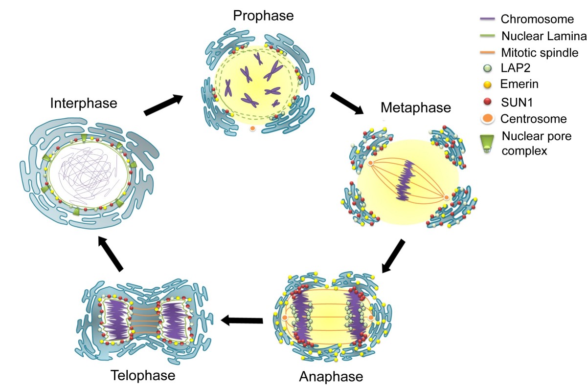 • 소포체의 재형성: 핵막을 흡수했던 소포체의 일부가 핵 주변을 둘러싸면서 닫힌 막을 형성하여 핵막을 재구성한다.
