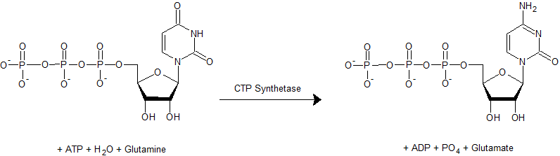 ATP는 피리미딘 합성을 활성화하고, CTP는 억제한다. 이는 퓨린/피리미딘 양을 유사하게 유지하여 DNA 합성에 필요한 퓨린과 피리미딘을 동일하게 공급한다.[1][5]