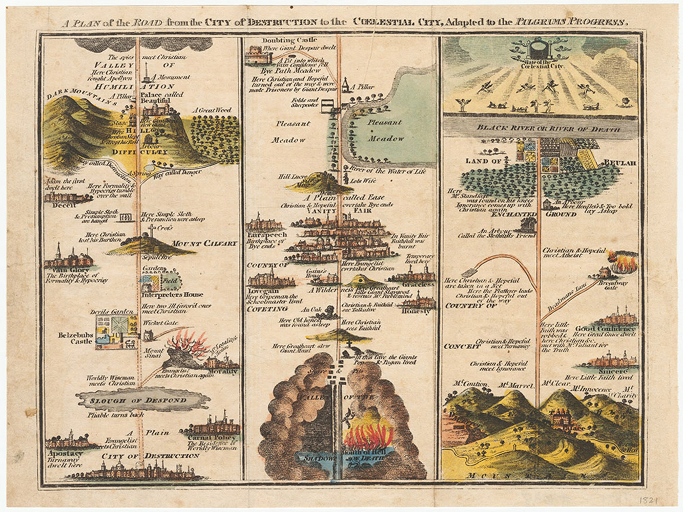 초기 평론가들은 존 번연에게 빚을 지고 있다는 것을 자명한 사실로 받아들였고, 베키를 순례자와 새커리를 충실한 자와 비교했다.[33] 그들은 극찬을 아끼지 않았지만,[35] 일부는 인간 본성에 대한 끊임없이 어두운 묘사에 실망감을 표하며 새커리가 그의 우울한 은유를 너무 멀리 끌고 갔다고 우려했다. 이러한 비평가들에게 새커리는 사람들을 대부분 "지독하게 어리석고 이기적"이라고 생각한다고 설명했다.