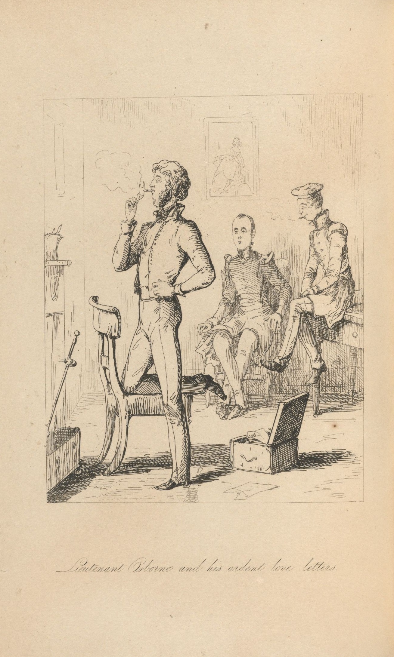 - '''조지 오스본''': 아밀리아의 소꿉친구이자 약혼자. 부유한 상인의 아들. 육군 중위가 되지만, 나중에 워털루 전투에서 전사한다. 방탕한 아들이며, 불성실한 바람둥이. 조지 오스본은 그의 아버지(상인으로, 도빈의 식료품점 주인인 아버지보다 사회적 지위가 훨씬 높았지만 자수성가했고, 아이러니하게도 도빈의 아버지(이때는 시의원이며 기사 작위를 받은 사람)가 대령으로 있는 시티 라이트 기병 연대의 병사였다)와 두 누이와 함께, 조스, 아멜리아의 아버지이자 조지 오스본의 대부인 세들리 가족과 가까이 지냈다. 조지 오스본은 세들리라는 그의 중간 이름을 여기서 따왔다. 하지만 세들리 씨가 경솔한 투기로 인해 파산하자 조지는 아버지의 반대에도 불구하고 아멜리아와 결혼한다. 아버지와 아들이 화해하기도 전에 조지는 워털루 전투에서 사망하고, 임신한 아멜리아는 힘든 나날을 보낸다. 이기적이고 허영심이 많으며 낭비벽이 있는 사람으로, 잘생긴 외모에 자기밖에 모르는 조지는 아버지로부터 받은 마지막 돈을 탕진하고 아멜리아를 돕기 위한 돈은 전혀 남겨두지 않았다. 아멜리아와 결혼한 후 그는 몇 주 만에 지루함을 느낀다. 그는 베키와 매우 진지하게 바람을 피우고, 전투에서 죽기 직전에야 아멜리아와 화해한다.