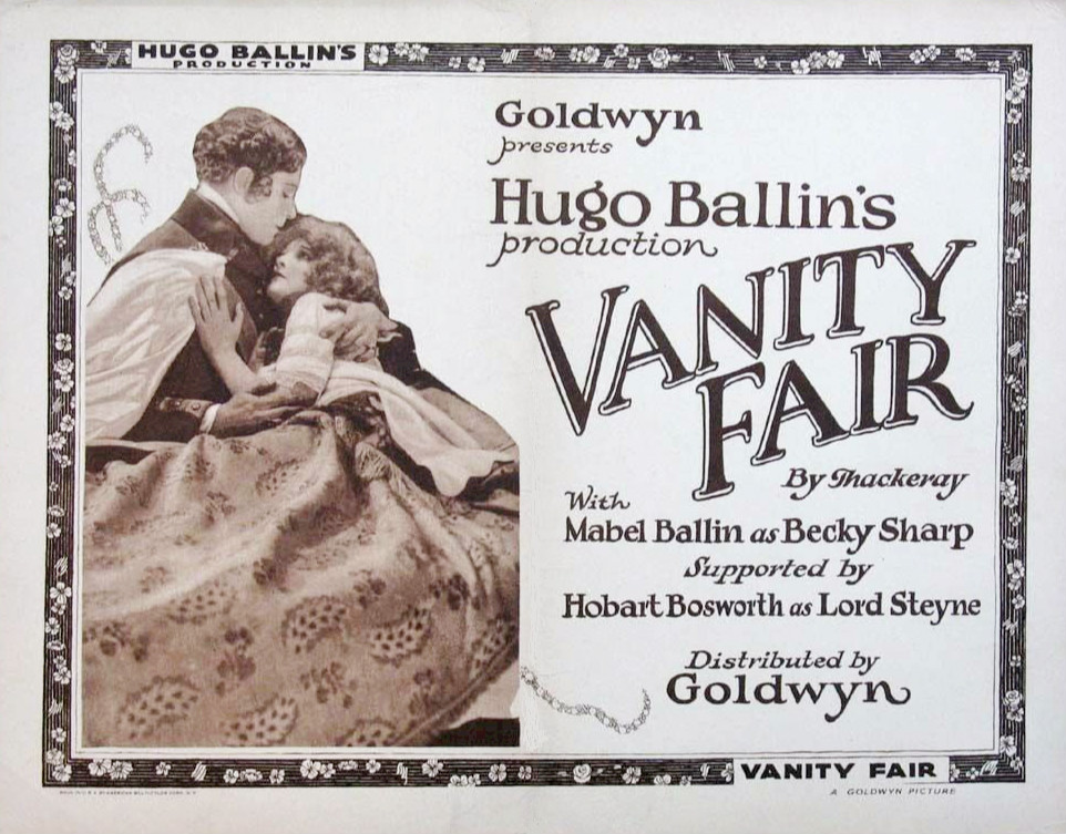 - 1923년, 『''Vanity Fair'' (한국어 제목: 허영의 도시)』로 영화화되었다. 감독은 휴고 볼린, 주연은 감독 부인인 메이블 볼린이다.