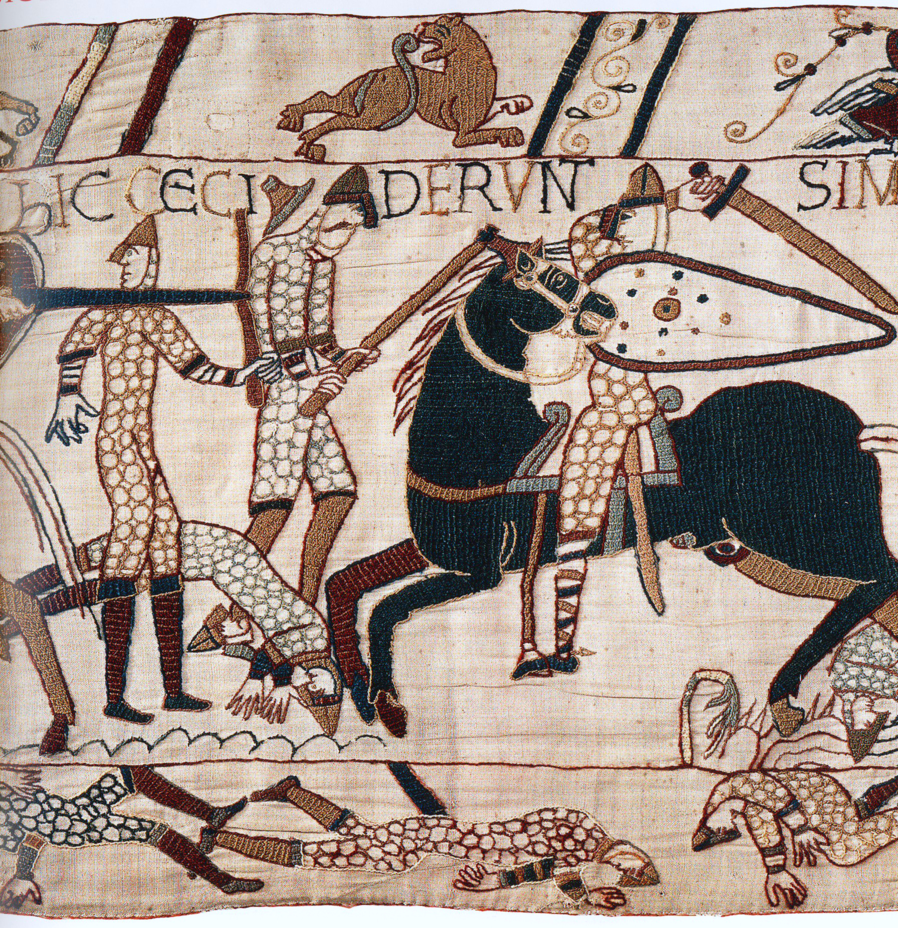 1066년 9월 25일, 노르웨이의 하랄드 3세의 침략을 스탬퍼드브리지 전투에서 물리친 잉글랜드의 왕 해럴드 2세는, 노르망디 공국의 윌리엄 1세가 쳐들어온다는 소식을 접했다. 해럴드는 7,000명의 병력을 이끌고 요크셔에서 남쪽으로 이동했지만, 이들은 훈련과 장비가 부족했다.[75] 반면 윌리엄은 북풍 때문에 8주 동안 항구에 묶여 있다가 바람의 방향이 바뀌자 9월 27일에 침공을 시작하여, 해럴드에게는 좋지 않은 시기에 강력한 기사단을 갖춘 적과 싸우게 되었다.10월 14일 새벽, 노르만 기사단은 잉글랜드군을 기습하여 헤이스팅스에서 북서쪽으로 16km 지점까지 몰아붙였다. 해질 무렵 해럴드가 전사하면서 잉글랜드군은 와해되었다.[75]