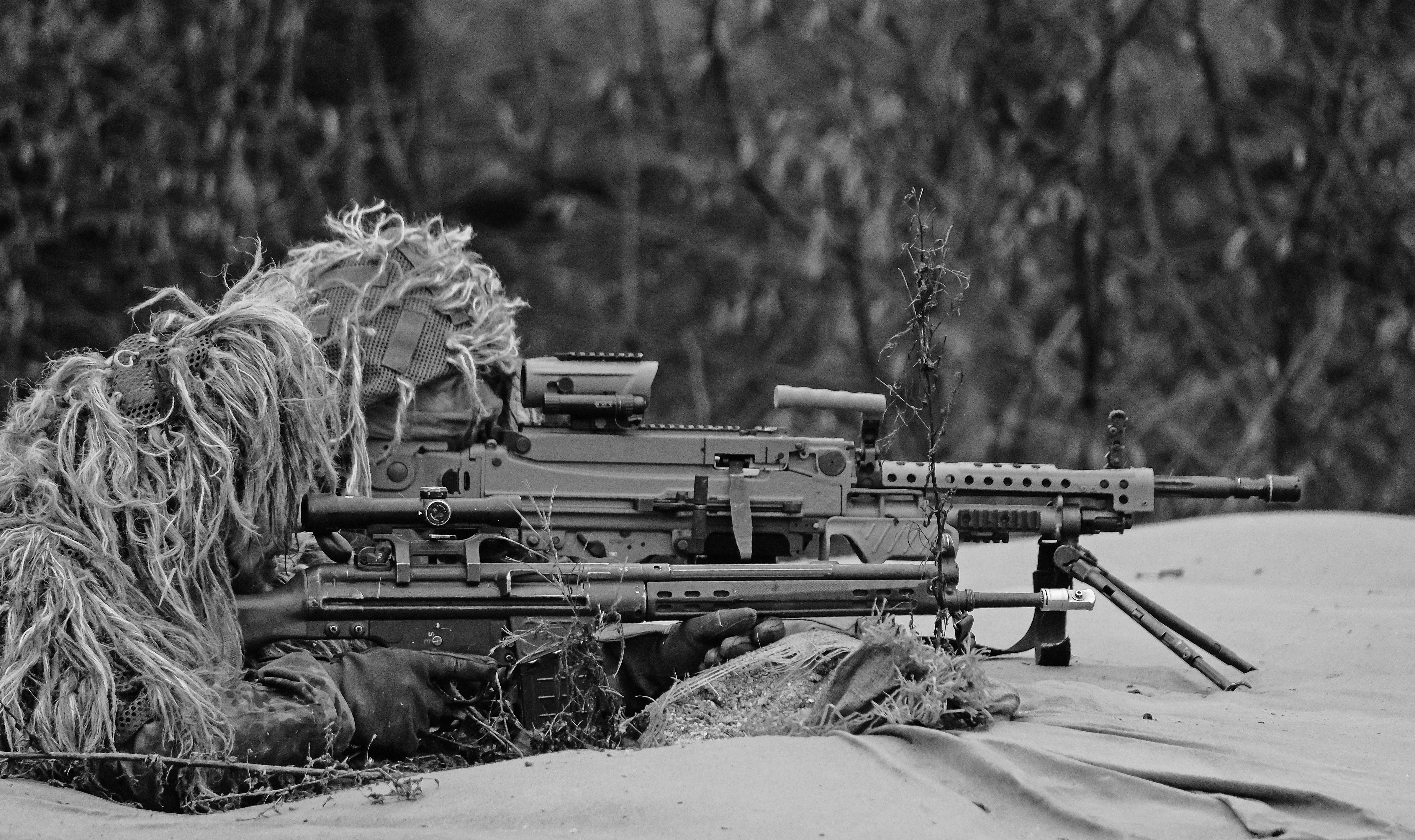 7.62 mm 화기 - FN SCAR FN SCAR는 FN Herstal에서 개발한 모듈형 소총으로, USSOCOM의 제식 소총 사업에 따라 개발되었으며 5.56mm NATO탄을 사용하는 SCAR-L과 7.62mm NATO탄을 사용하는 SCAR-H 두 가지 모델로 나뉘고, 모듈화 설계, 인체공학적 설계, 양손잡이용 조작 장치 등의 특징을 가진다.