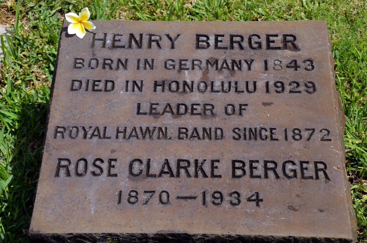 헨리 버거는 베를린에서 Heinrich August Wilhelm Berger|하인리히 아우구스트 빌헬름 버거de라는 이름으로 태어났다. 그는 독일 제국 군대의 군악대원으로 활동하며, 작곡가이자 왕실 군악대 지휘자였던 요한 슈트라우스 2세 밑에서 일했다.[8] 그는 프로이센-프랑스 전쟁에 참전했으며,[9][2] 이후 독일 황제 빌헬름 1세에 의해 포츠담 기지에서 하와이 국왕 카메하메하 5세에게 파견되어 왕의 군악대를 지휘하게 되었다.[1][8]2. 2. 하와이 왕국에서의 활동 (1872년-1915년)