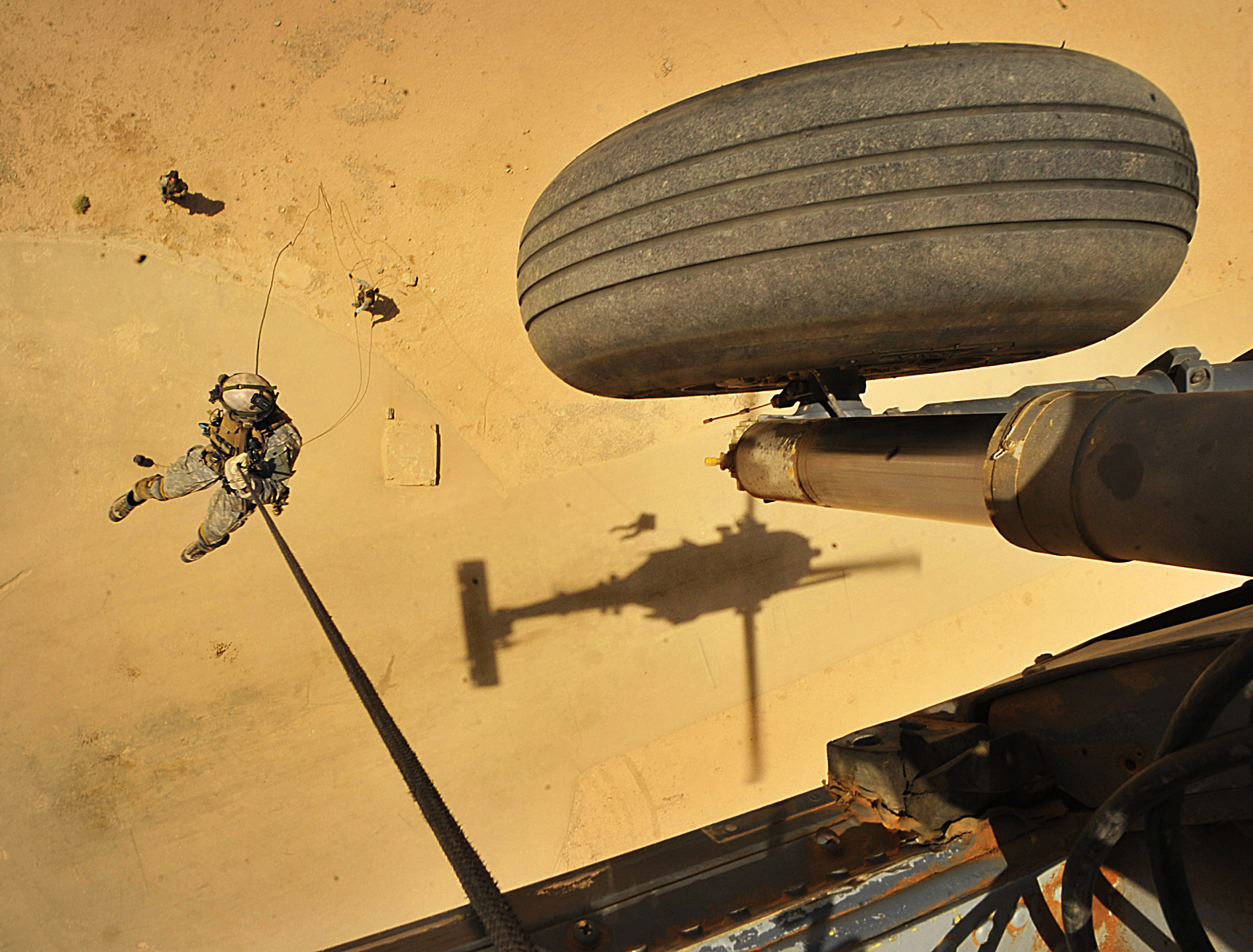 - 군사 작전: 특수 부대를 포함한 군인들이 헬리콥터를 이용한 공중 강습 시, 적절한 착륙 지점이 없을 때 목표 지점에 신속하게 침투하기 위한 전술적 수단으로 사용된다.