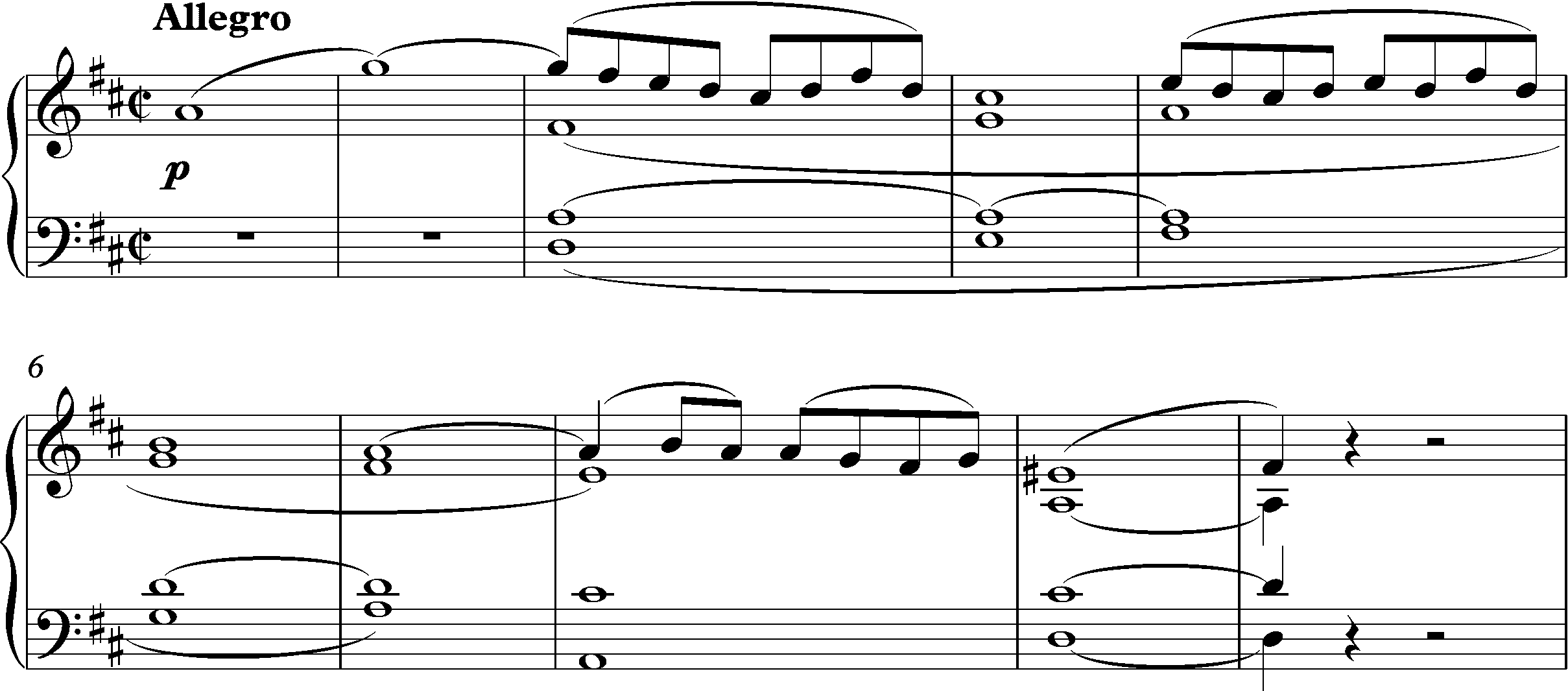 라장조, 2/2 박자, 소나타 형식이다.