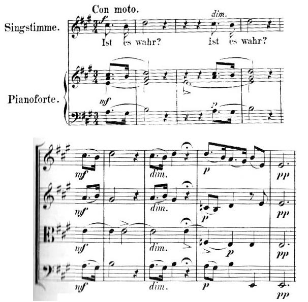 멘델스존의 노래 "Ist es wahr?"의 모티프, 그리고 사중주 시작부 아다지오에 나타나는 모티프