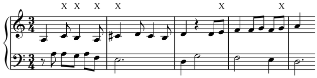 로베르트 슈만의 연가곡집 ''시인의 사랑'' 중 "성 위에서"(''Auf einer Burg'')에서는 특정 불협화음(14마디)에 강세를 표시하여 극적인 정점을 만들었다. 리하르트 바그너는 그의 후기 오페라, 예를 들어 신들의 황혼의 "하겐의 감시" 장면에서 극도의 불협화음을 사용하여 어둡고 위협적인 분위기를 효과적으로 조성했다.