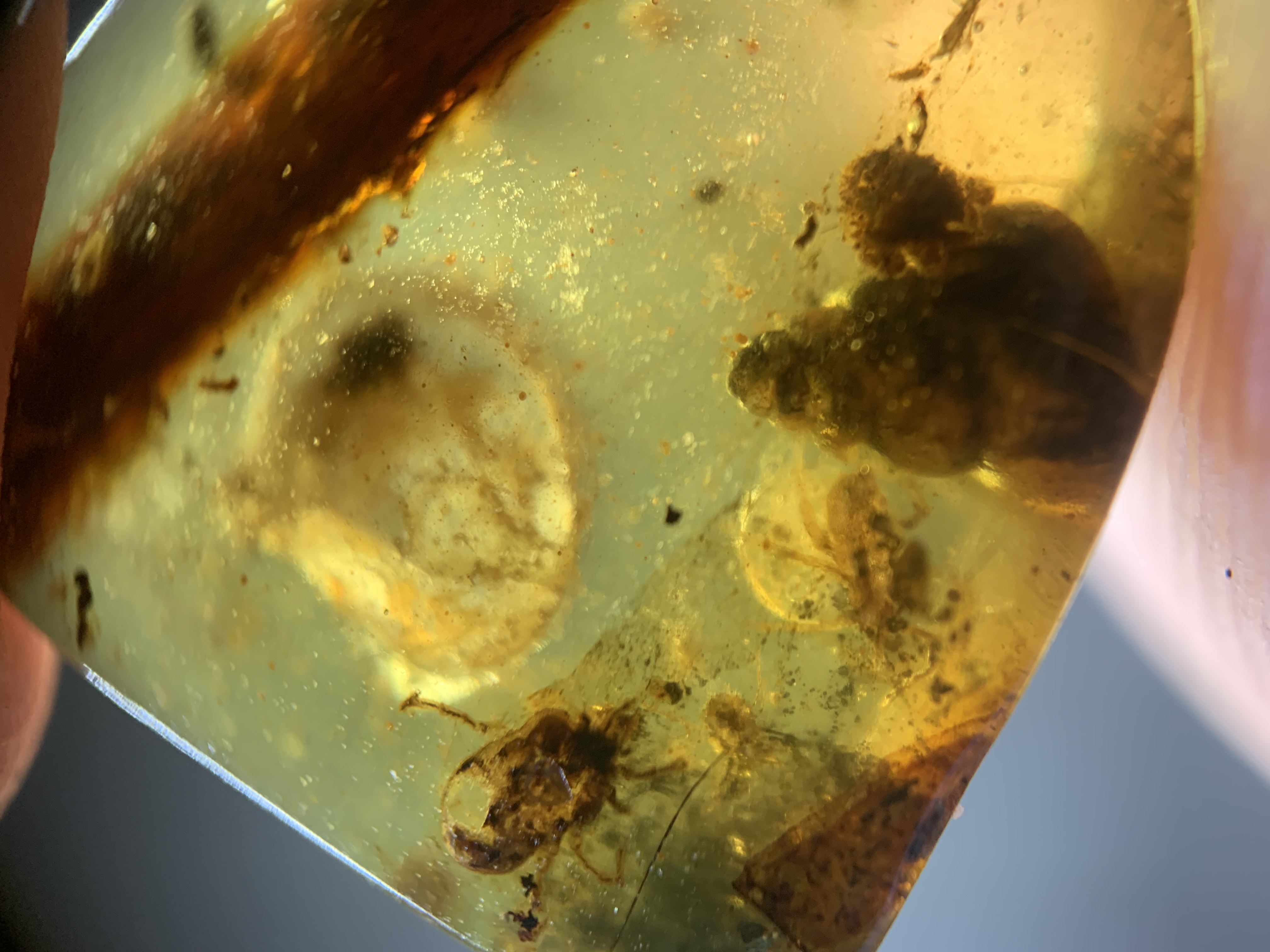 다수의 불분명한 포함물을 가진 전형적인 호박 표본