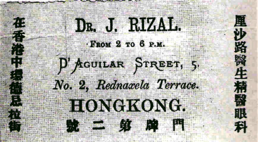 1891년부터 1892년까지 리잘은 가족과 함께 홍콩에서 거주하며 안과 진료소를 운영했다. 이 시기에 그는 9명의 여성에 대해 글을 썼는데, 그중에는 레오노르 리베라와의 8년간의 로맨틱한 관계도 포함되어 있었다. 그녀는 그의 소설 ''《상처 입은 자》''에 등장하는 마리아 클라라의 모델로 여겨진다.