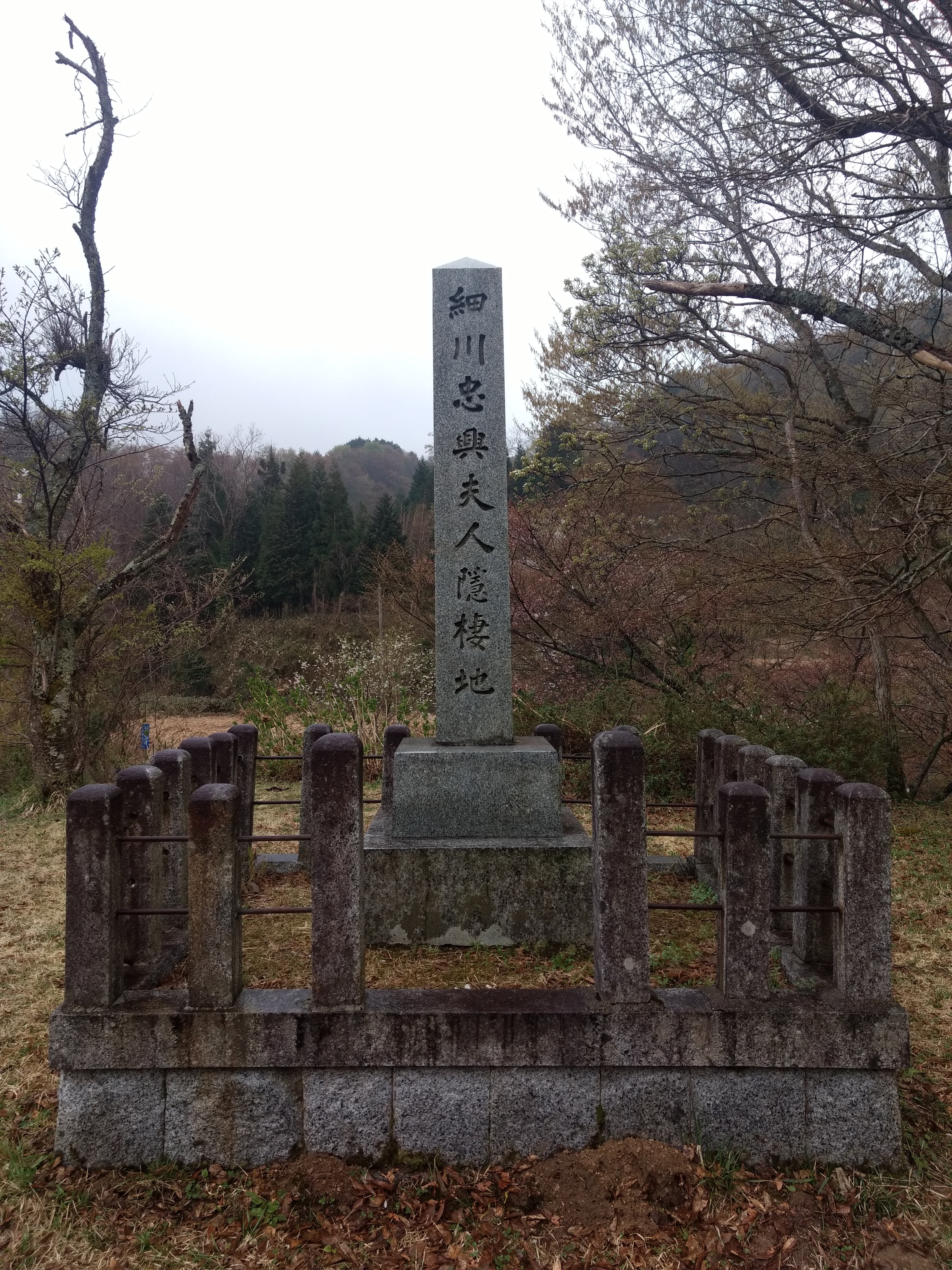 교토탄고시 야사에정 스가와에는 호소카와 가라샤 은거지 비석("호소카와 타다오키 부인 은거지"라고 새겨져 있다)이 세워져 있다.[28]